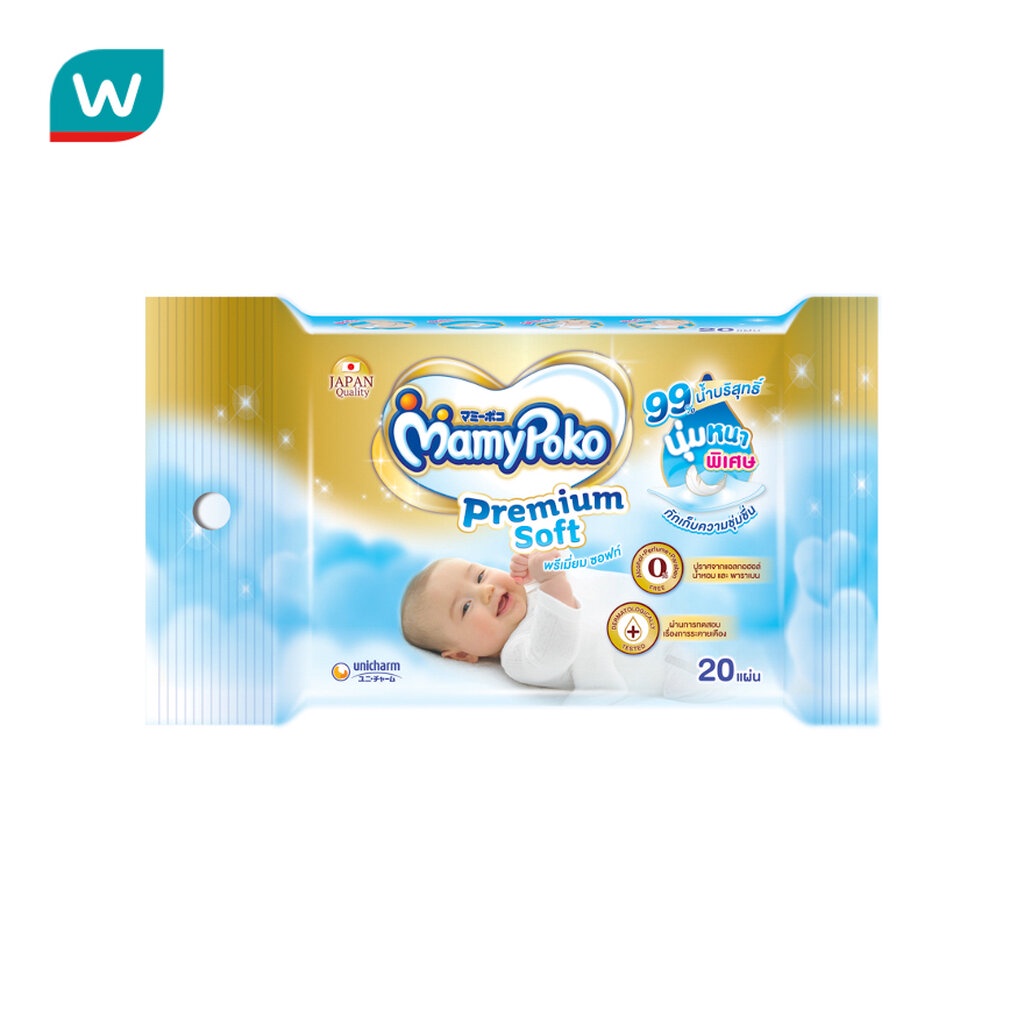 Mamy Poko มามี่ โพโค ไวพ์ พรีเมี่ยม ซอฟท์ 20 แผ่น