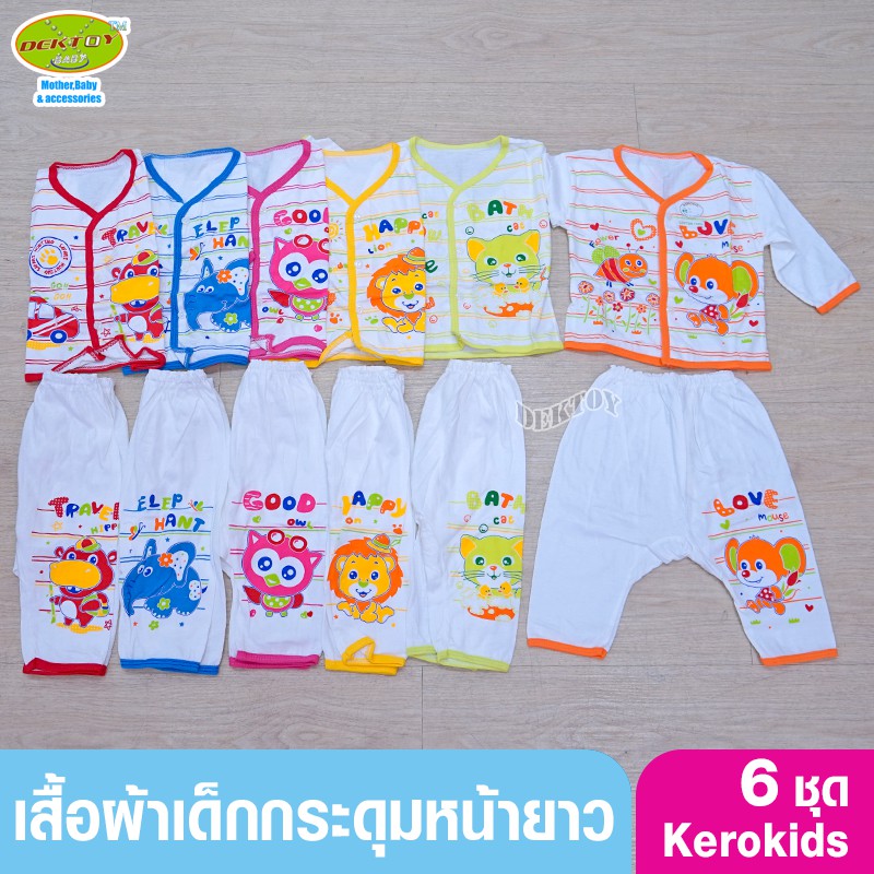 Kerokid เสื้อผ้าแรกเกิดกระดุมหน้ายาวแพ็ค 6 ชุดลายน้อย
