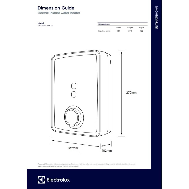 เครื่องทำน้ำอุ่น UltimateHome 300 กำลังไฟ 3.5 กิโลวัตต์ ยี่ห้อ Electrolux รุ่น EWE351PX-DWX5 (รับประกัน 10ปี)