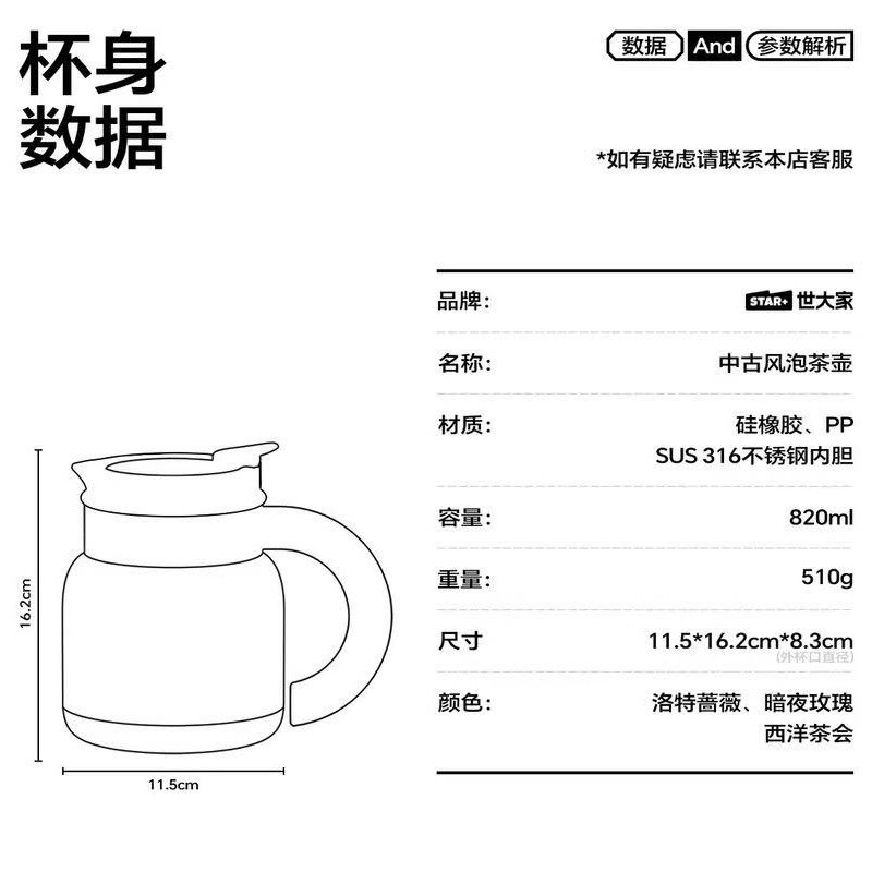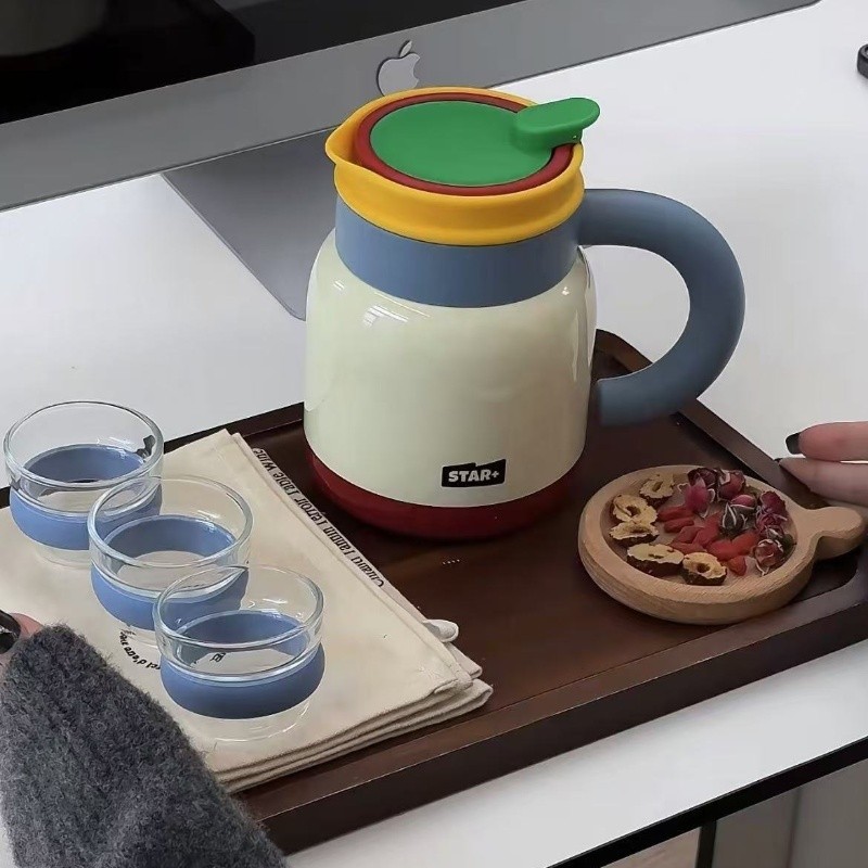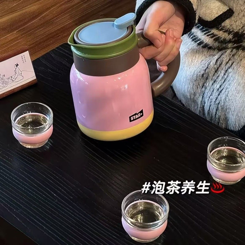 STAR+ ถ้วยเทอร์โมกาน้ําชาย้อนยุคกาต้มน้ําความจุขนาดใหญ่ 316 กระติกน้ําร้อนสแตนเลสในครัวเรือนกาน้ําชาสตูว์ 820มล