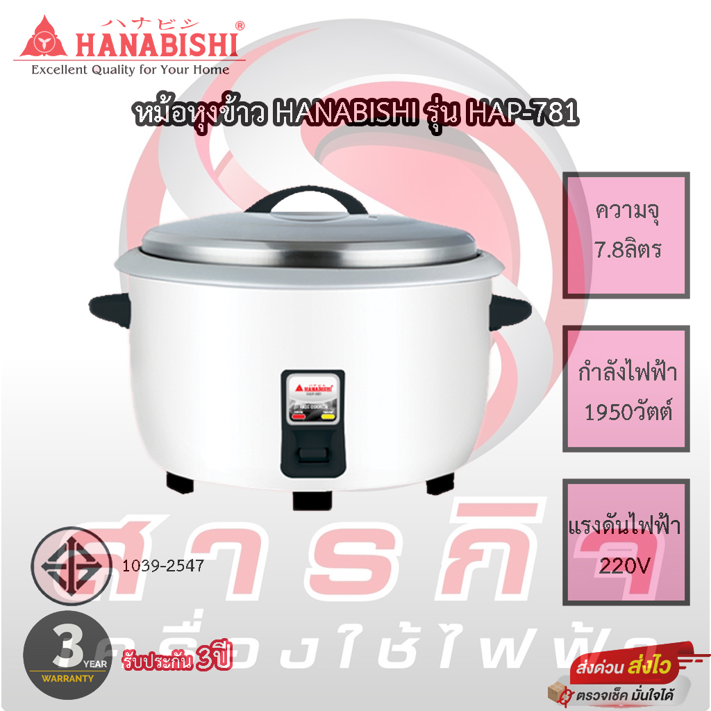 หม้อหุงข้าว Hanabishi ขนาด7.8ลิตร รุ่น HAP-781 รับประกันแผ่นความร้อน3ปี