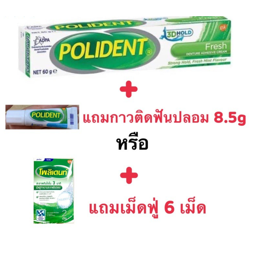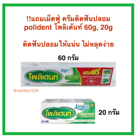 ฉลากไทย แท้ 100% กาวติดฟันปลอม ครีมติดฟันปลอม polident โพลิเด้นท์ 60g, 20g ติดฟันปลอมให้แน่น ไม่หลุดง่าย