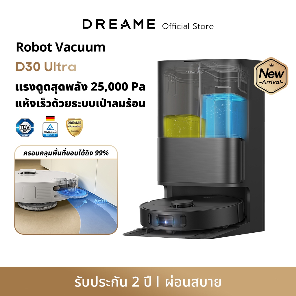 Dreame D30 Ultra Robot Vacuum 25000Pa ดูดฝุ่นถูพื้นอัตโนมัติ ล้างผ้าเอง MopExtend เลี่ยงสิ่งกีดขวางอัจฉริยะ