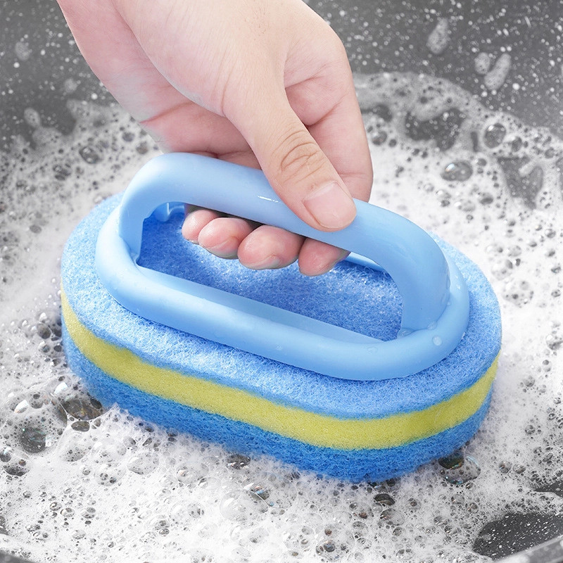แปรงทำความสะอาด แปรงขัดอเนกประสงค์ พร้อมด้ามจับ ฟองน้ําหนา ทําความสะอาด สำหรับห้องครัว ห้องน้ำ ขัดพื้น G3493