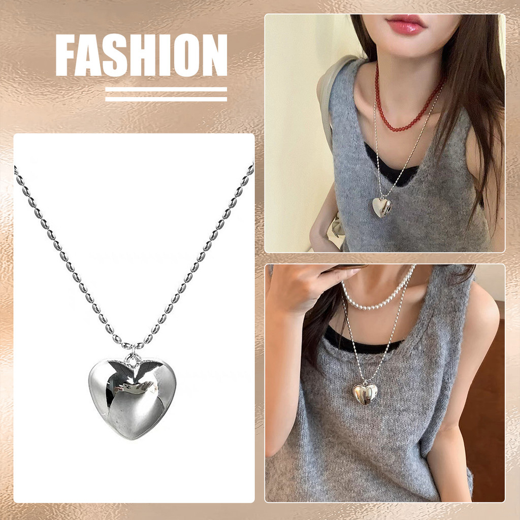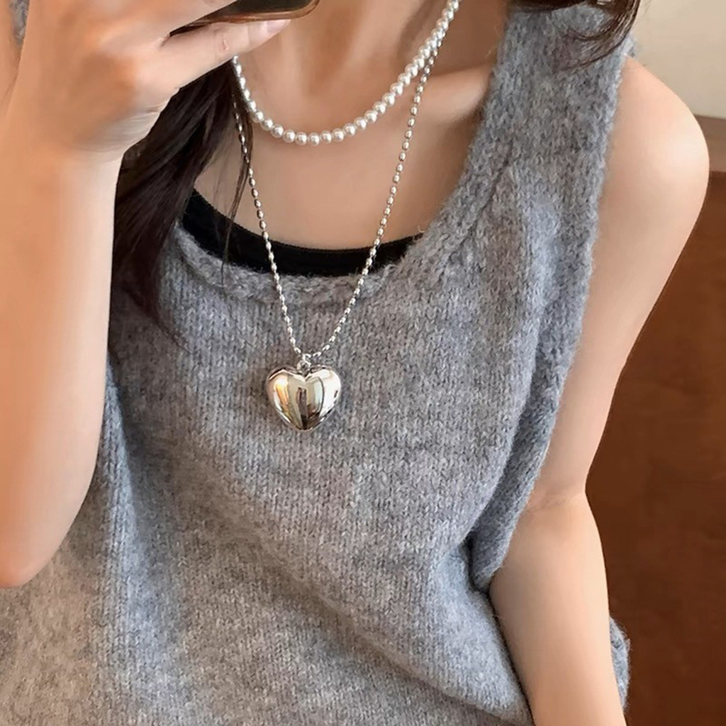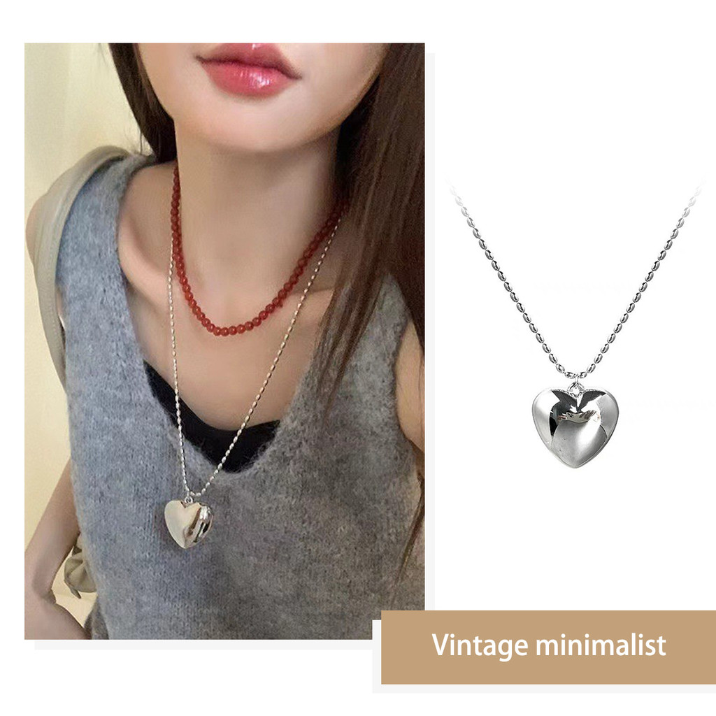 สร้อยคอยาวลูกปัดข้าวหัวใจโลหะสไตล์บล็อกเกอร์เกาหลีสําหรับผู้หญิงหรูหราเบาๆเฉพาะกลุ่มสร้อยคอชั้นเรียบง่าย