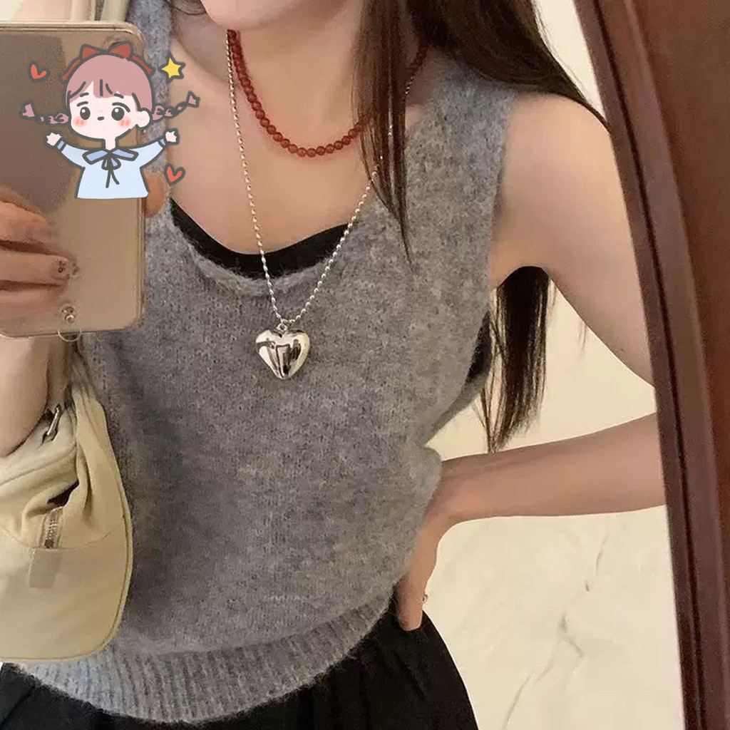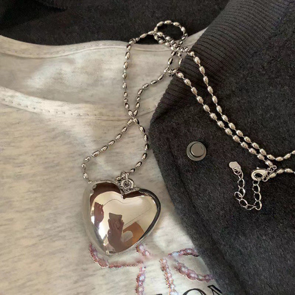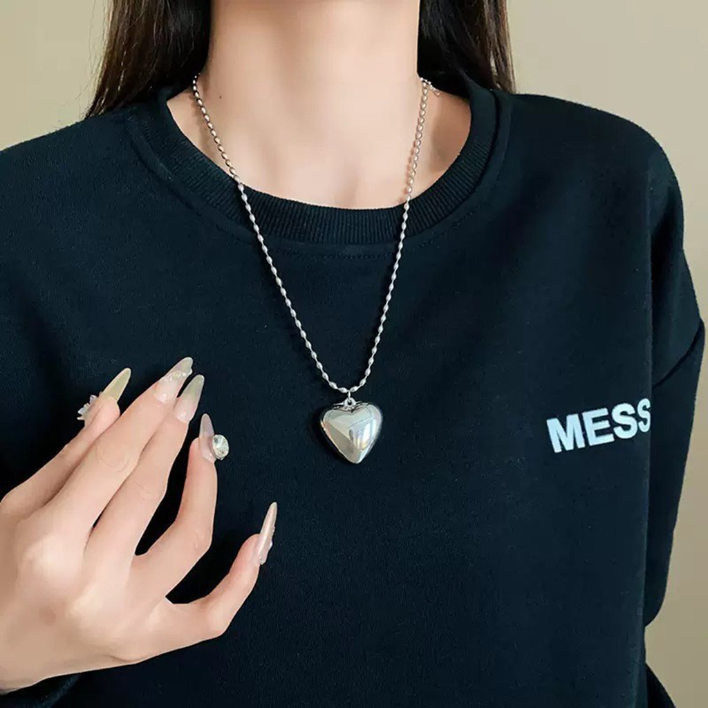 สร้อยคอยาวลูกปัดข้าวหัวใจโลหะสไตล์บล็อกเกอร์เกาหลีสําหรับผู้หญิงหรูหราเบาๆเฉพาะกลุ่มสร้อยคอชั้นเรียบง่าย