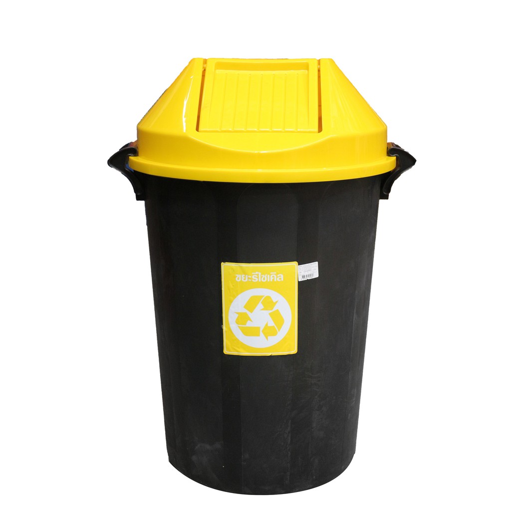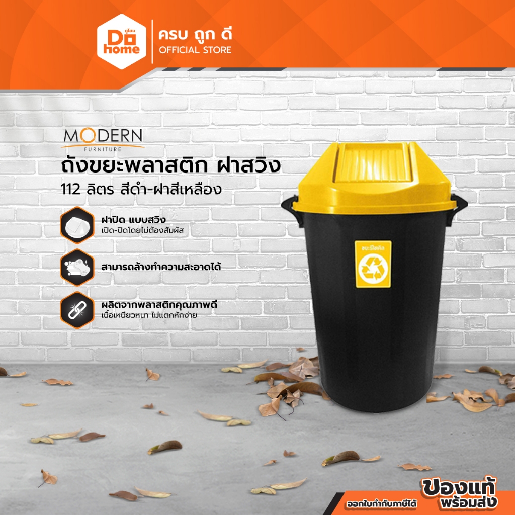 MODERN ถังขยะพลาสติก ฝาสวิง 112 ลิตร สีดำ-ฝาสีเหลือง |BAI|
