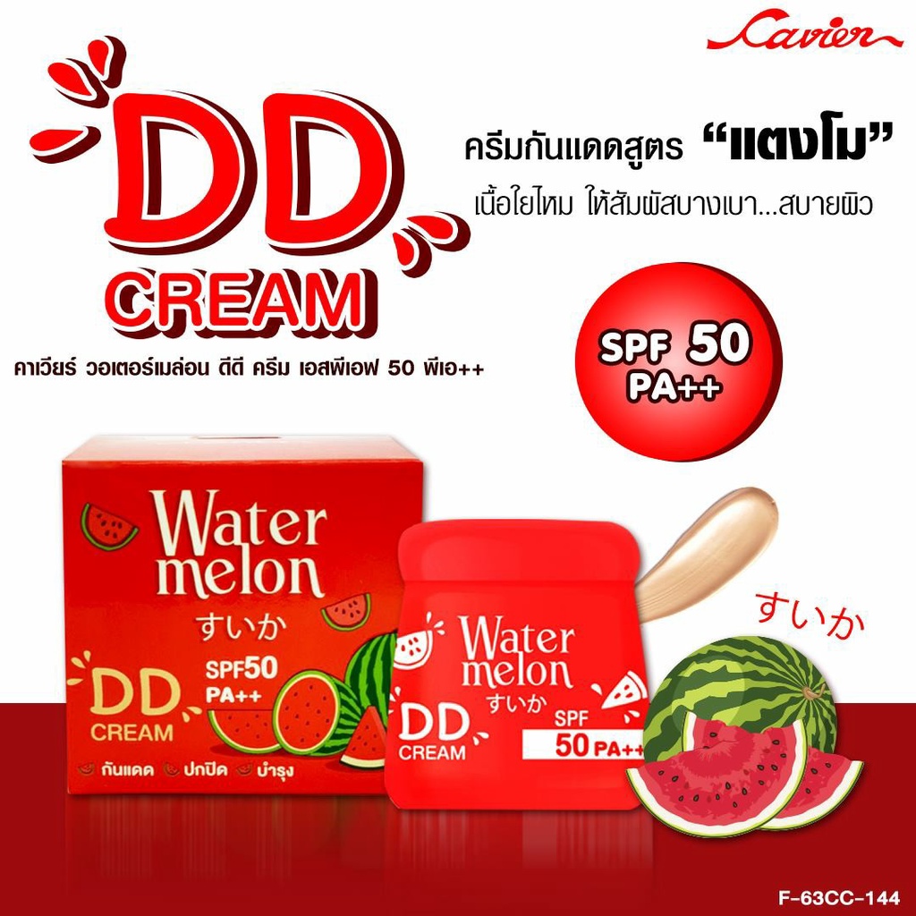 Cavier Watermelon DDCream SPF 50 PA ครีมกันแดดสูตรแตงโม มีสารสกัดจากแตงโมเข้มข้นปกป้องผิวจากแสงแดด