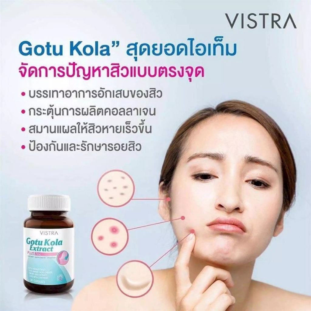 Vistra Gotu Kola Extract Plus Zinc 30 Cap วิสทร้า โกตู โคลา เอ็กแทรค พลัส ซิงค์ 30เม็ด