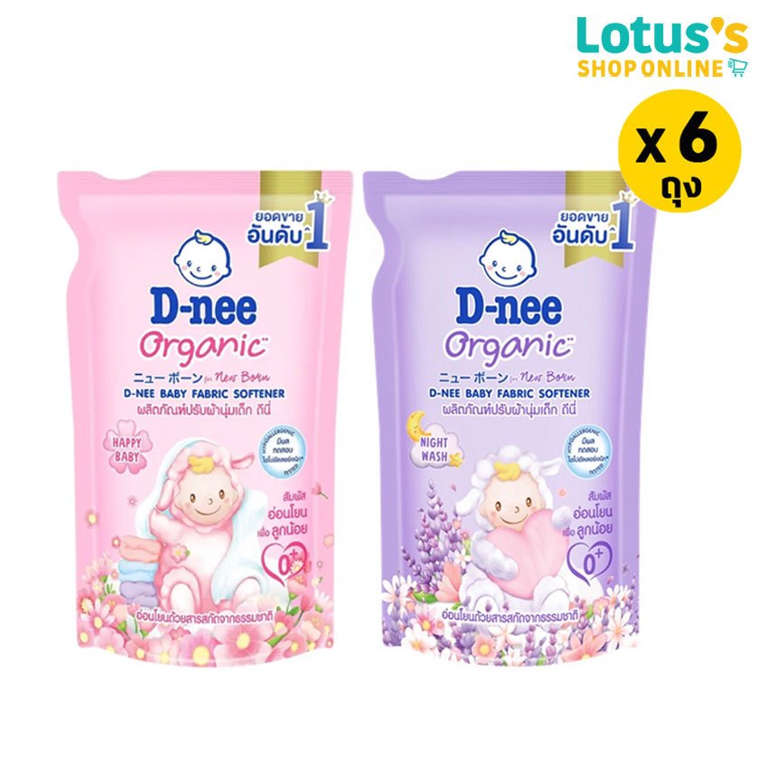 [ทั้งหมด 6 ถุง] ดีนี่ น้ำยาปรับผ้านุ่มเด็ก ถุงเติม 530 มล. D-NEE BABY FABRIC SOFTENER REFILL 530 ML.