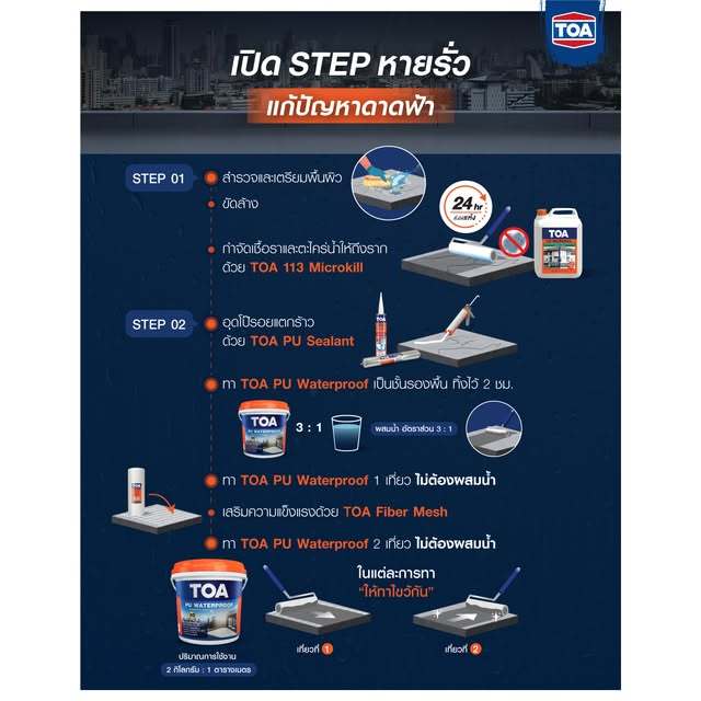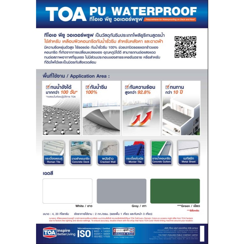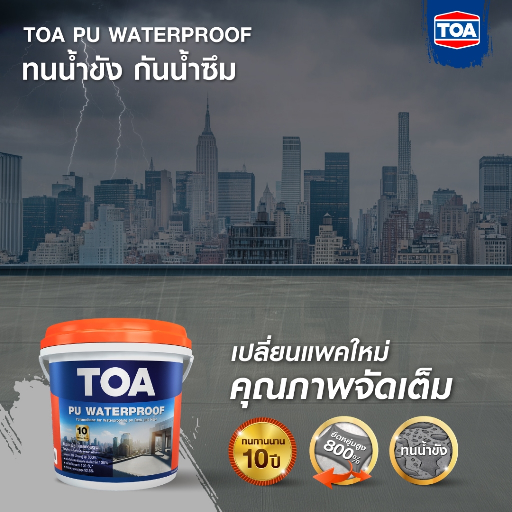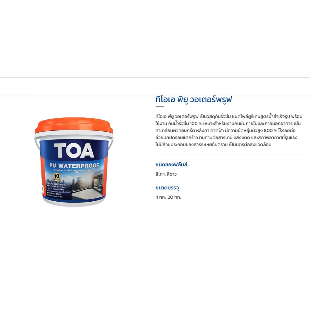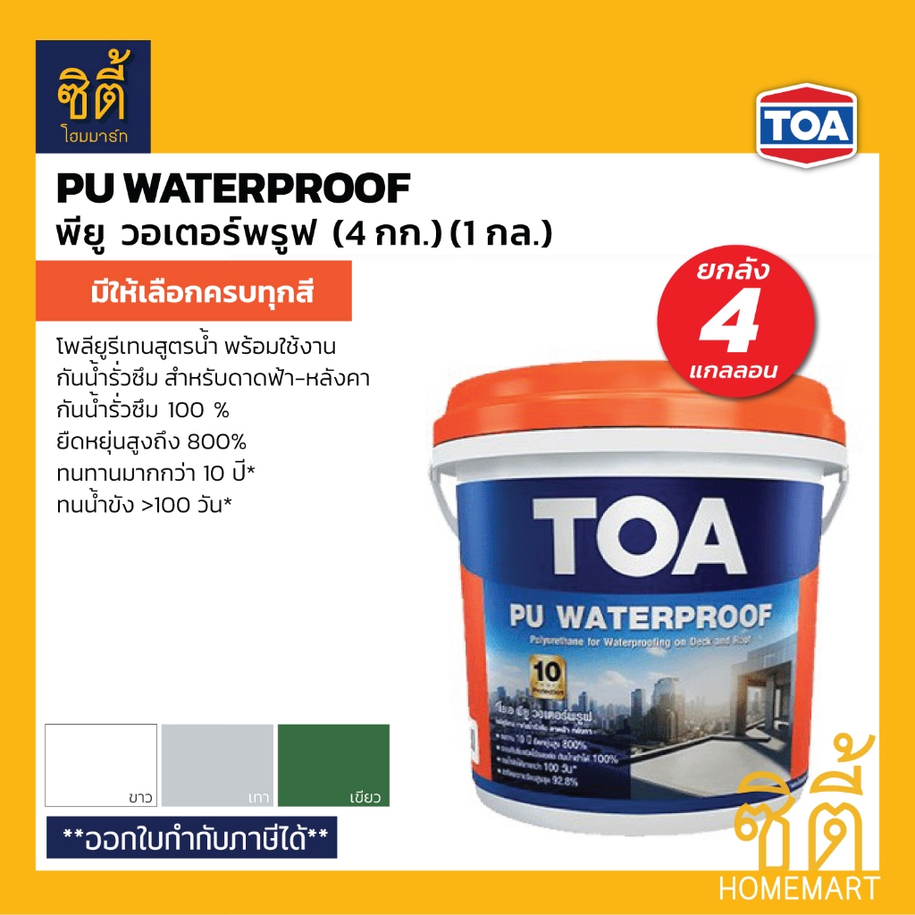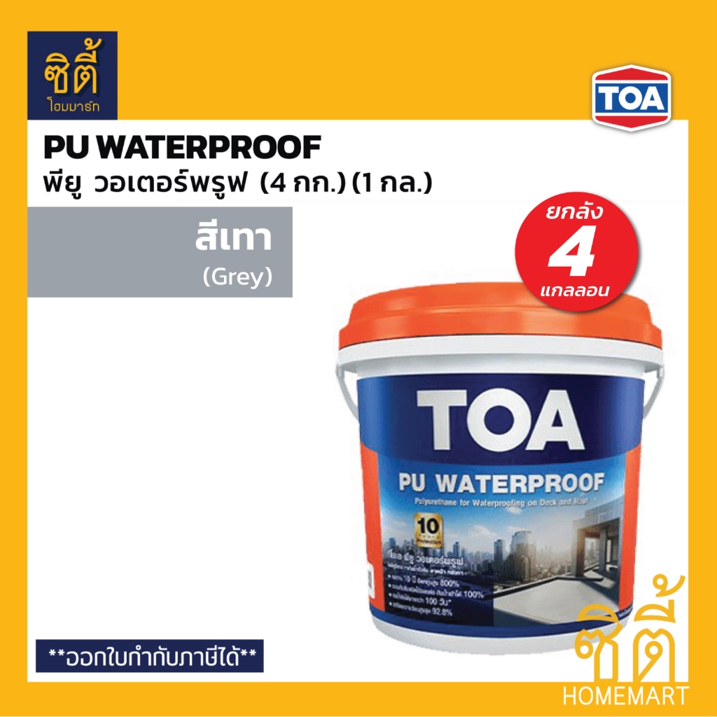 TOA PU WATERPROOF ทีโอเอ พียู วอเตอร์พรูฟ (4 กก.)(1 กล.) (ลัง 4 กล.) โพลียูรีเทน ทากันน้ำรั่วซึม กันรั่วซึม ดาดฟ้าหลังคา