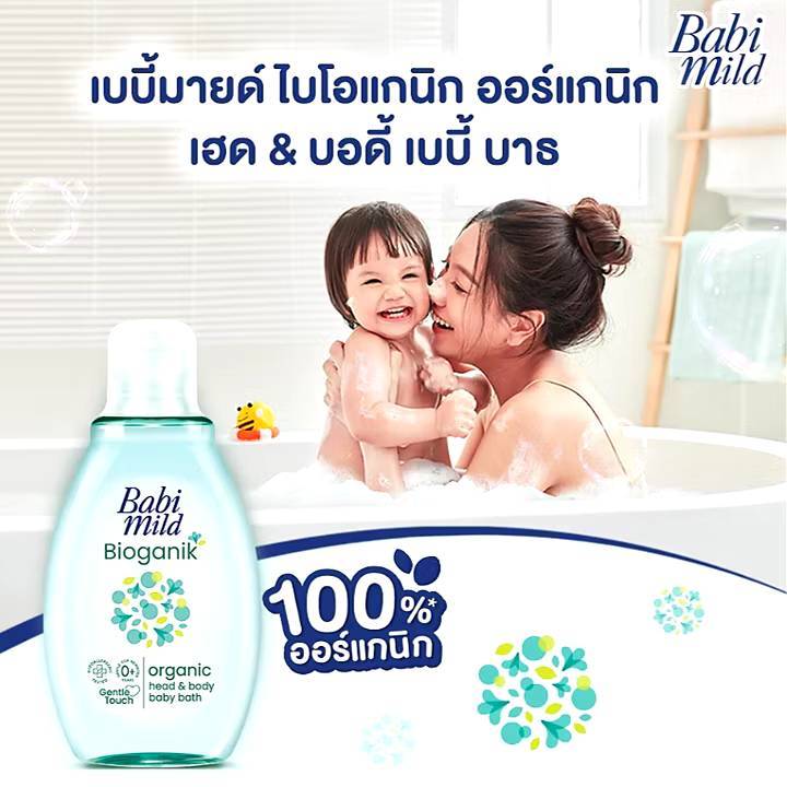 Babi mild เบบี้มายด์ สบู่เหลวอาบน้ำและสระผม สูตรไบโอแกนิก 180 มล.
