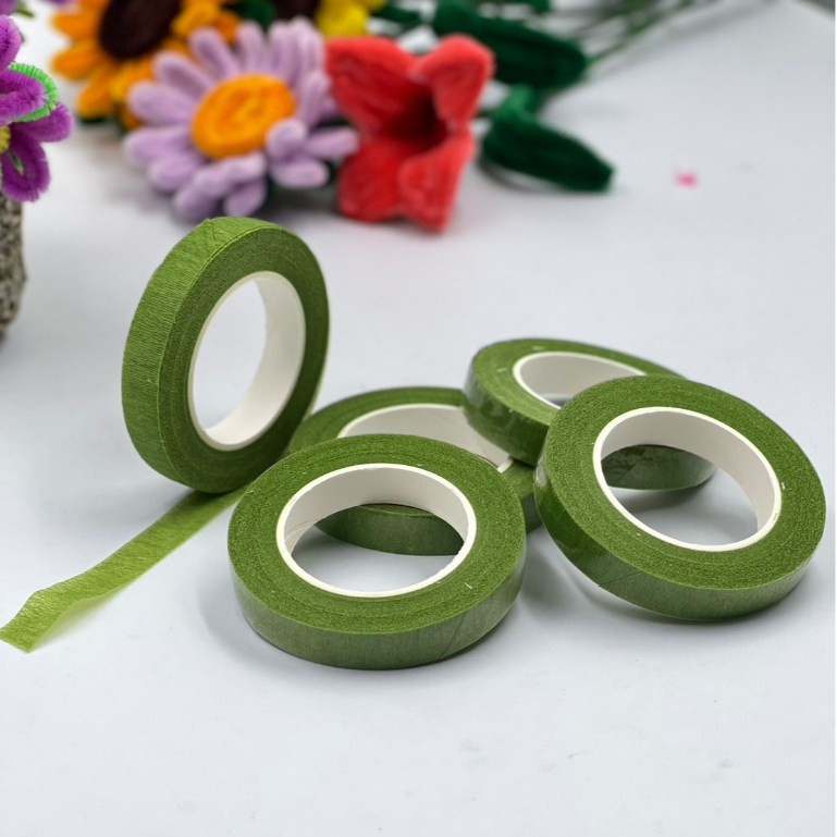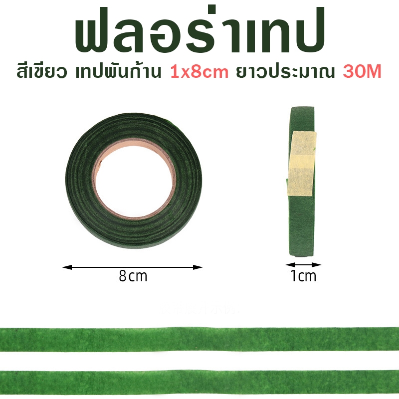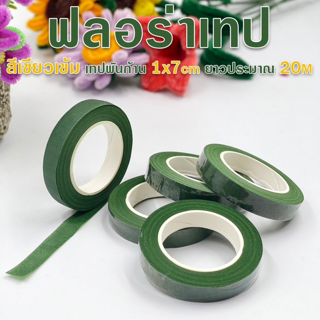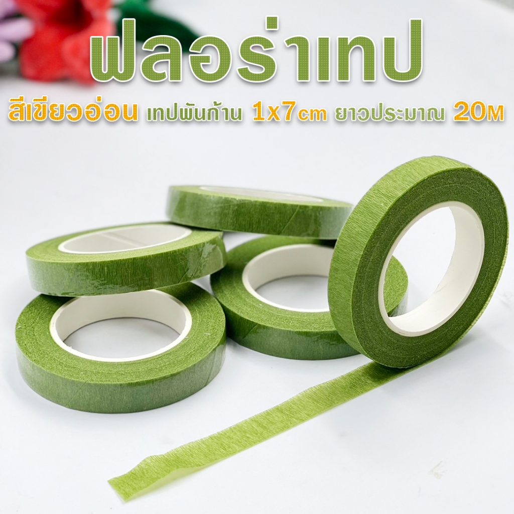 ฟลอร่าเทป เทปพันก้านดอกไม้ ไว้ใช้สำหรับพันกานดอกไม้ ก้านใบ ไม้เสียบต่างๆมีสีเขียวที่สมจริงและสวยงาม