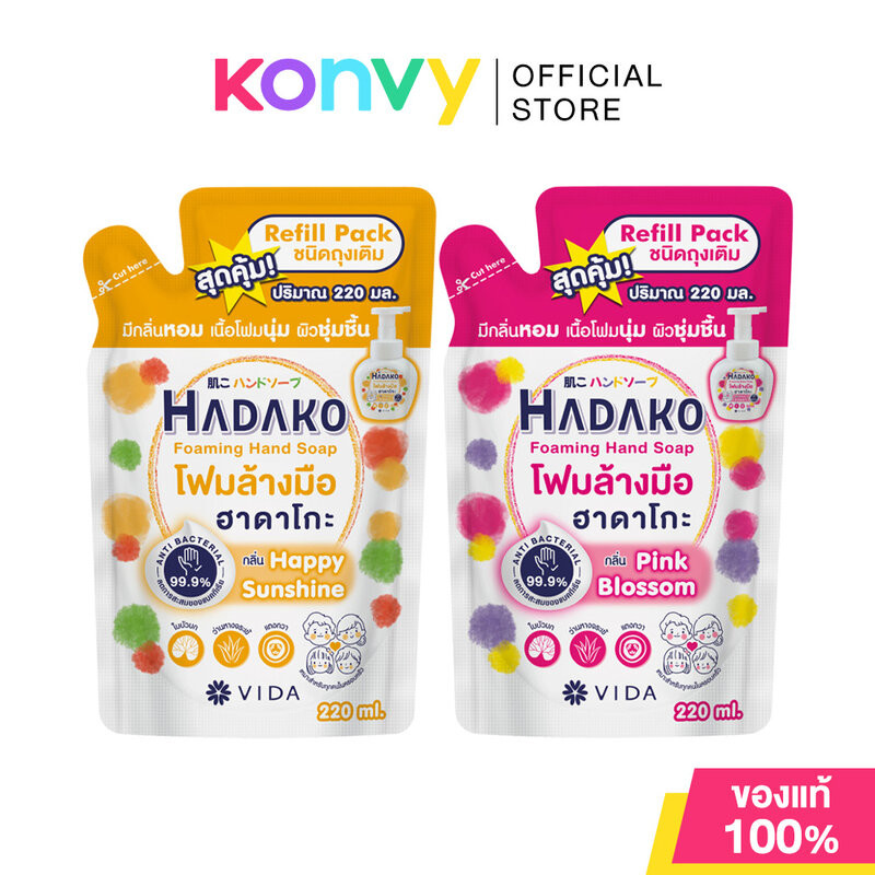 Vida Hadako Foaming Hand Soap Refill Pack วีด้า โฟมล้างมือ 220ml (Pink Blossom/Happy Sunshine)