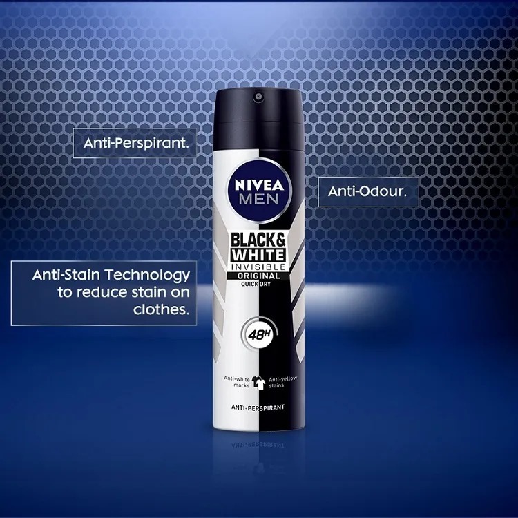 NIVEA นีเวียเมน แบล็ค แอนด์ ไวท์ อินวิซิเบิ้ล สเปรย์ 50 มล. Black And White Invisible Spray 50 Ml.