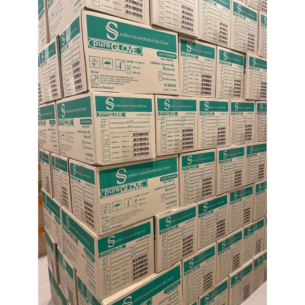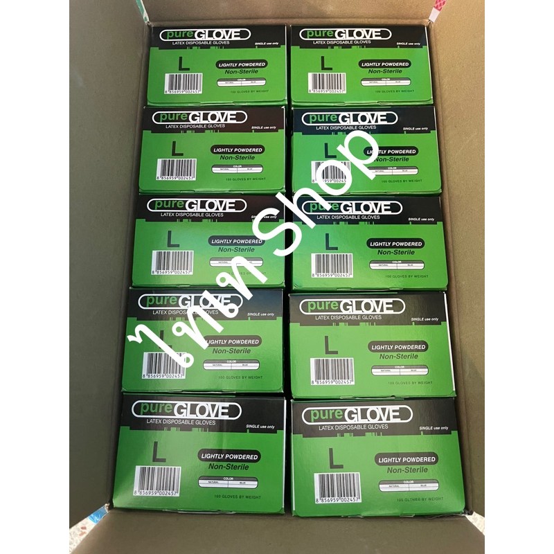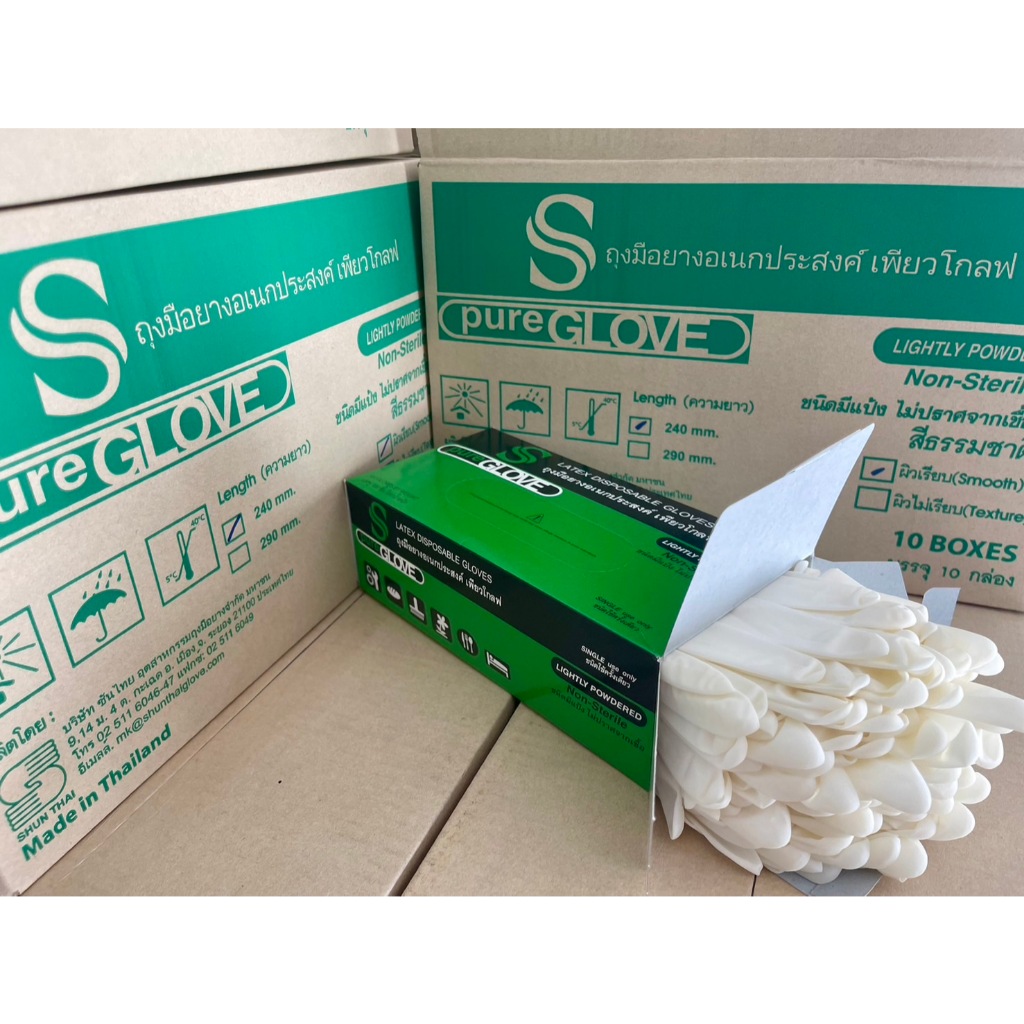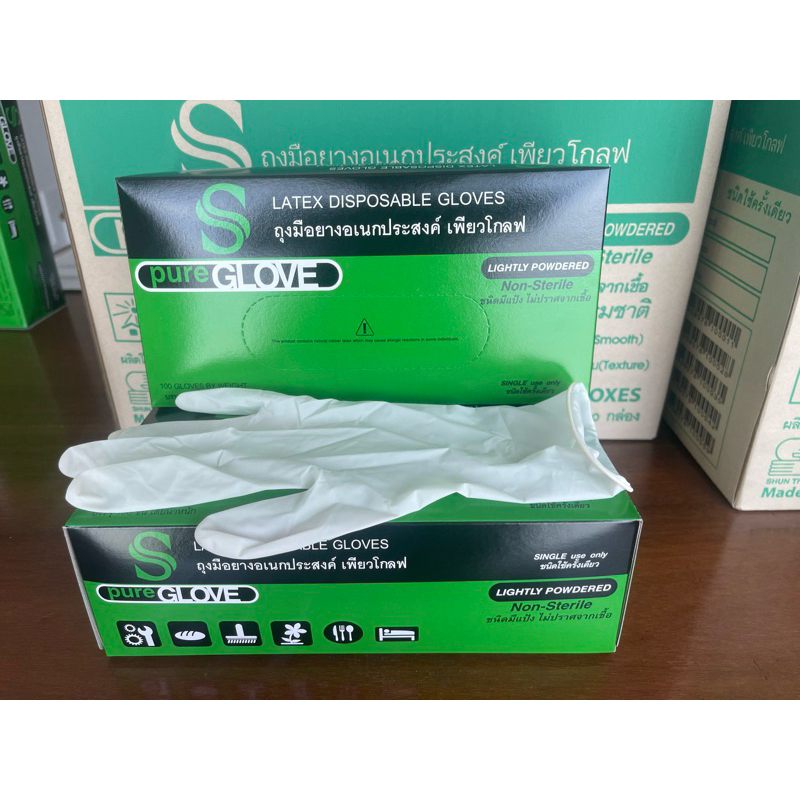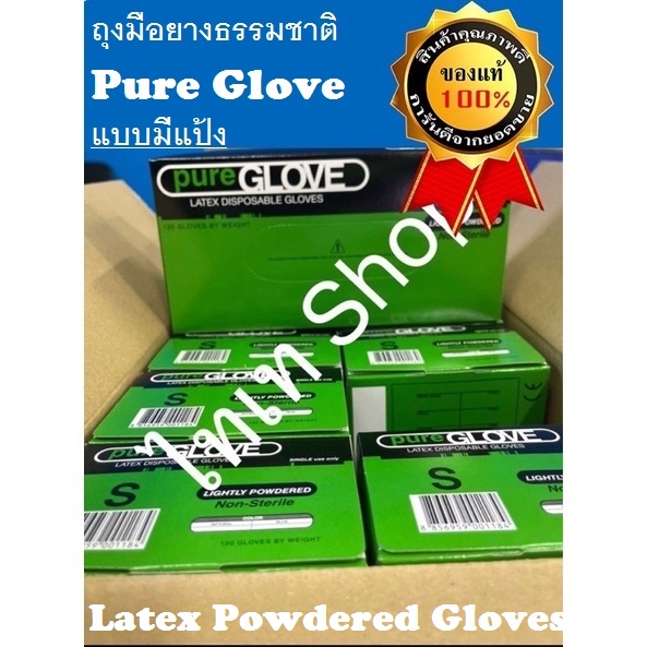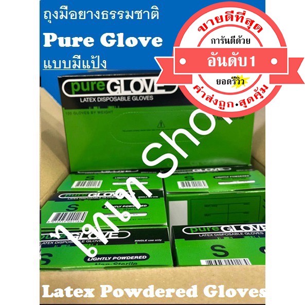 ขายดีอันดับ 1 การันตีด้วยยอดรีวิว ค่าส่งถูกที่สุด+ส่งทุกวัน+ออกบิลได้ ถุงมือยางมีแป้ง เพียวโกลฟ PureGlove Latex Powdered