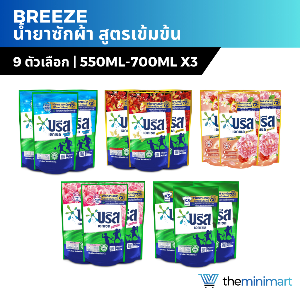 [แพ็ก3ถุง] Breeze Excel บรีส เอกเซล น้ำยาซักผ้า สูตรเข้มข้น 550-700มล. x3