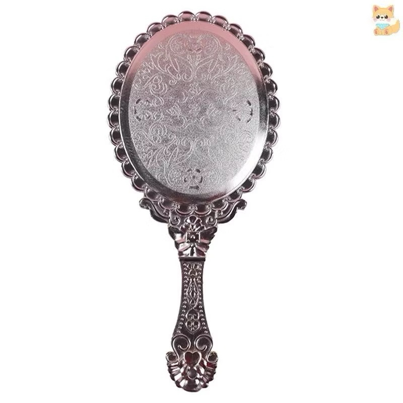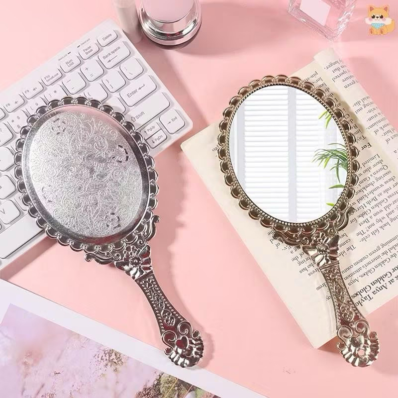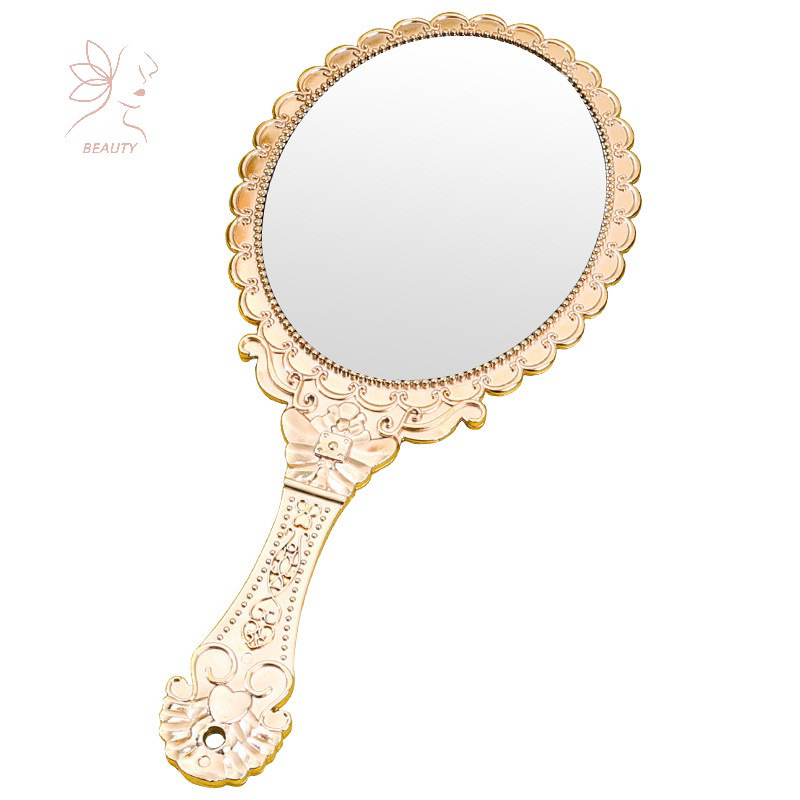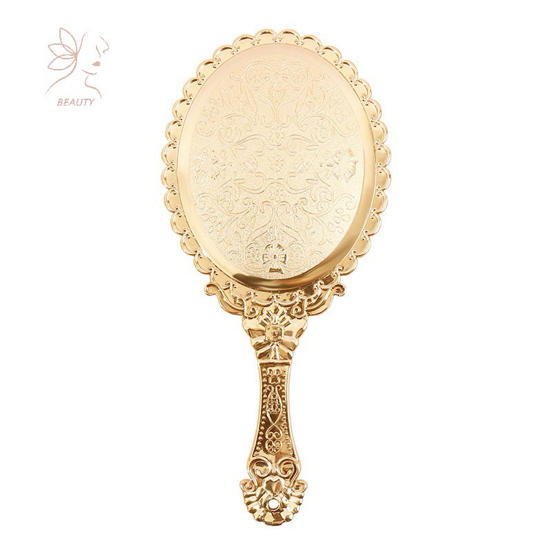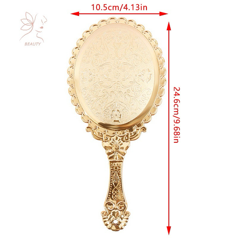 กระจกแต่งหน้า รูปทรงไข่ วินเทจ มีด้ามจับ สีโรสโกลด์ ขนาด 10.5 x 24.6 cm