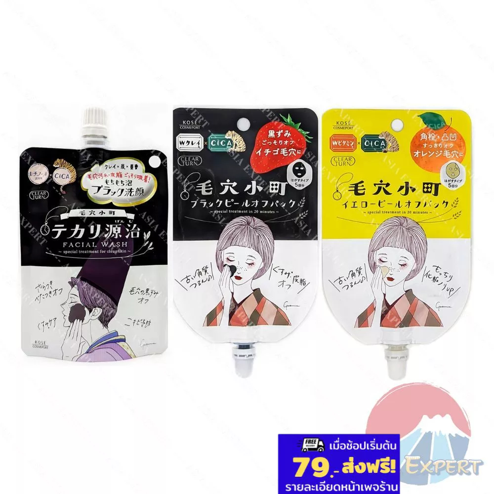 KOSE CLEAR TURN Peel Off Pack 30g 2ชนิด ครีมมาส์กดูแลผิว/ Sticky Facil Wash 120g โฟมล้างหน้า พอกหน้า