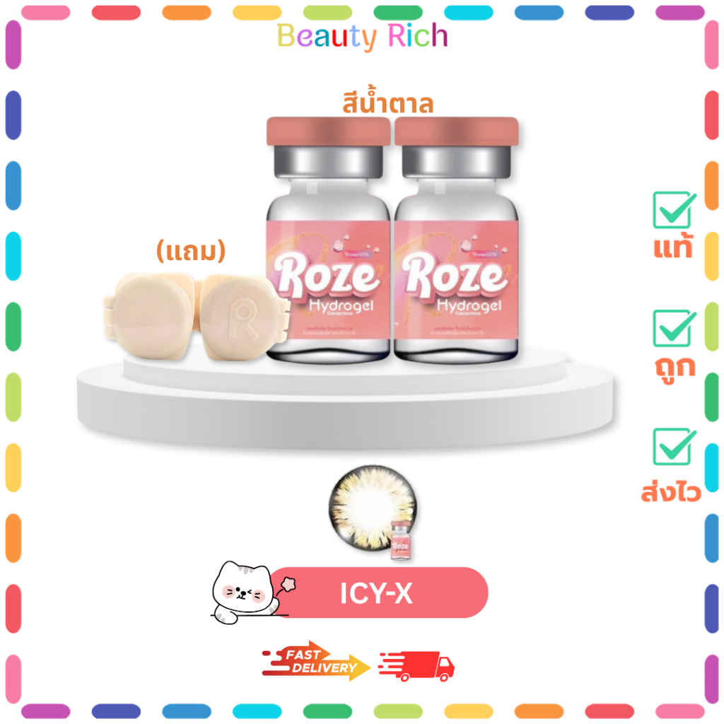 (1 คู่) Roze Hydrogel Contact Lens โรเซคอนแทคเลนส์ ค่าสายตา 0.00(ปกติ) ลาย Icy-X #สีน้ำตาล (แถมตลับ)