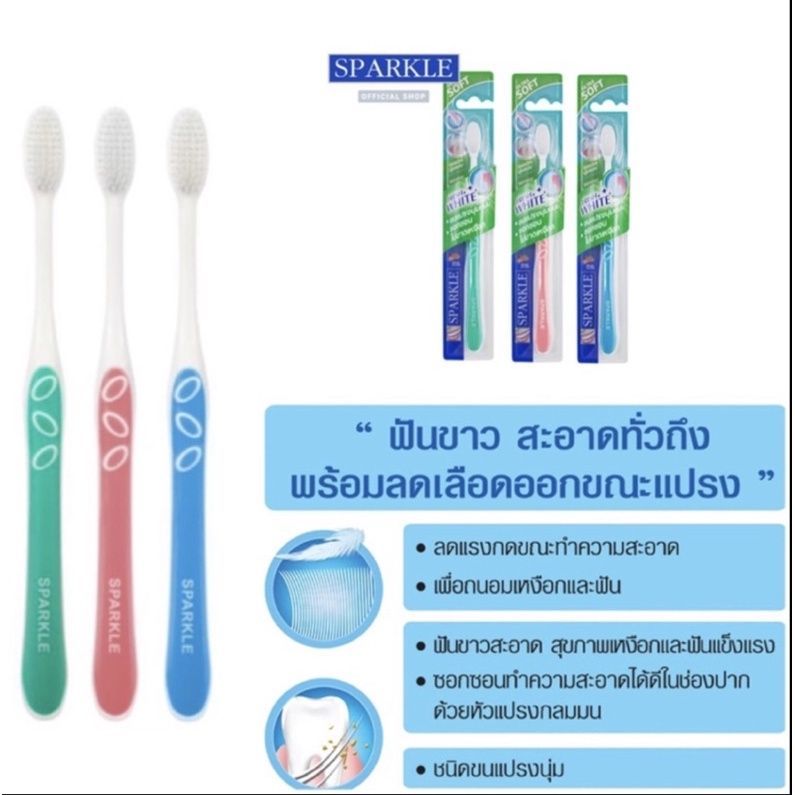 สปาร์คเคิล แปรงสีฟัน เฟรช ไวท์ 1 ด้าม คละสี ทำความสะอาดช่องปาก หัวแปรงกลมมน