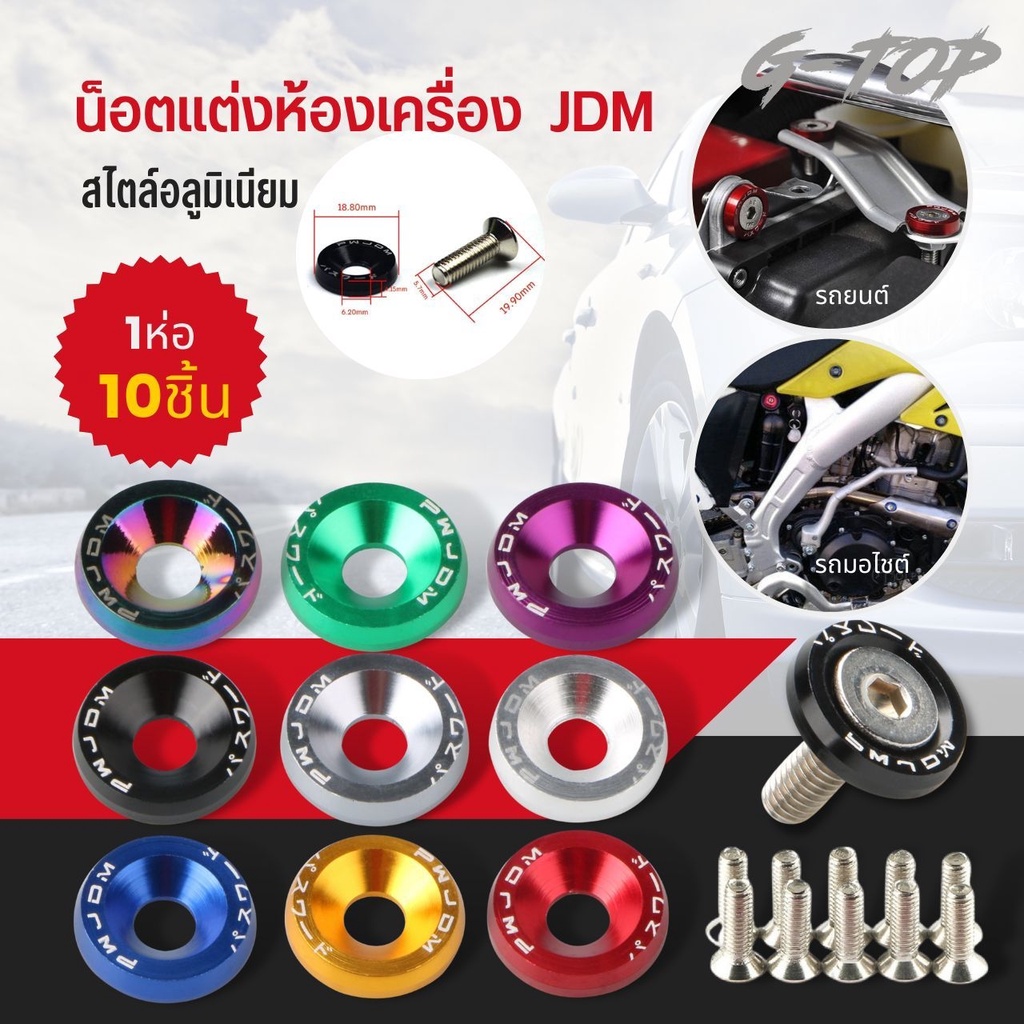 น็อตแต่งห้องเครื่อง (1ห่อ=10ตัว) น็อตชุดสีมอไซด์ JDMขนาดM6 น๊อต (เบอร์ 10) งานดีราคาถูก CM02