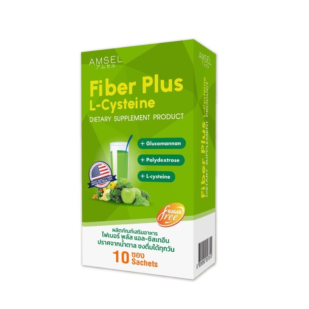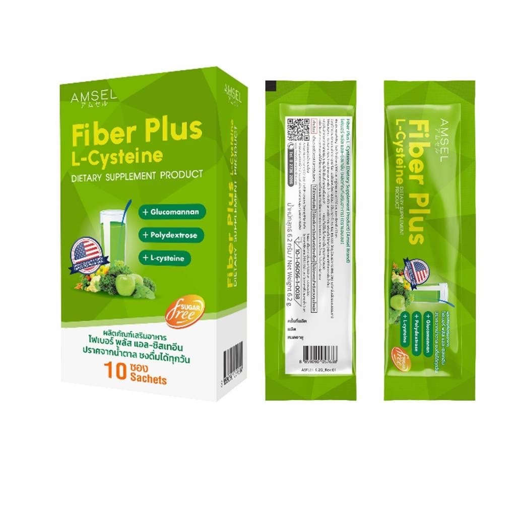 Amsel Fiber Plus L-Cysteine แอมเซล ไฟเบอร์ พลัส แอล ซีสเทอีน (10 ซอง) x2 กล่อง