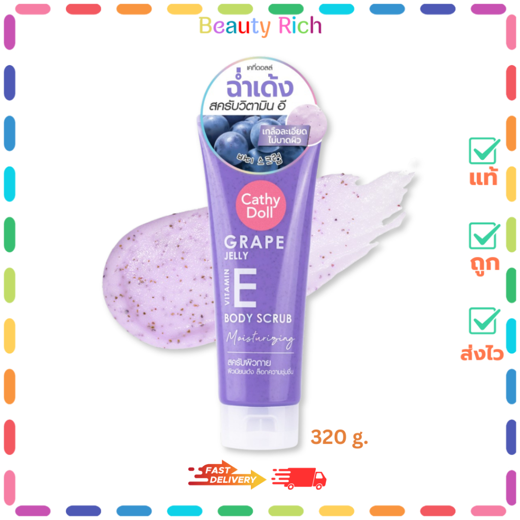 (1 หลอด) Cathy Doll (เกรฟเจลลี่วิตามินอี) เคที่ดอลล์ เกลือสครับขัดผิวเม็ดละเอียด (320 g.)