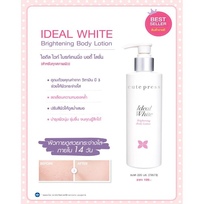 🌟 โลชั่นผิวขาว คิวท์เพรส CUTE PRESS IDEAL WHITE BRIGHTENNING BODY LOTION 220มล.