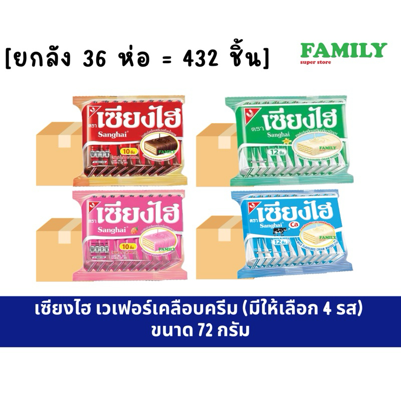 (ยกลัง) เซียงไฮ เวเฟอร์เคลือบครีม (5รส) 6ก.x432ชิ้น [36 แพค]