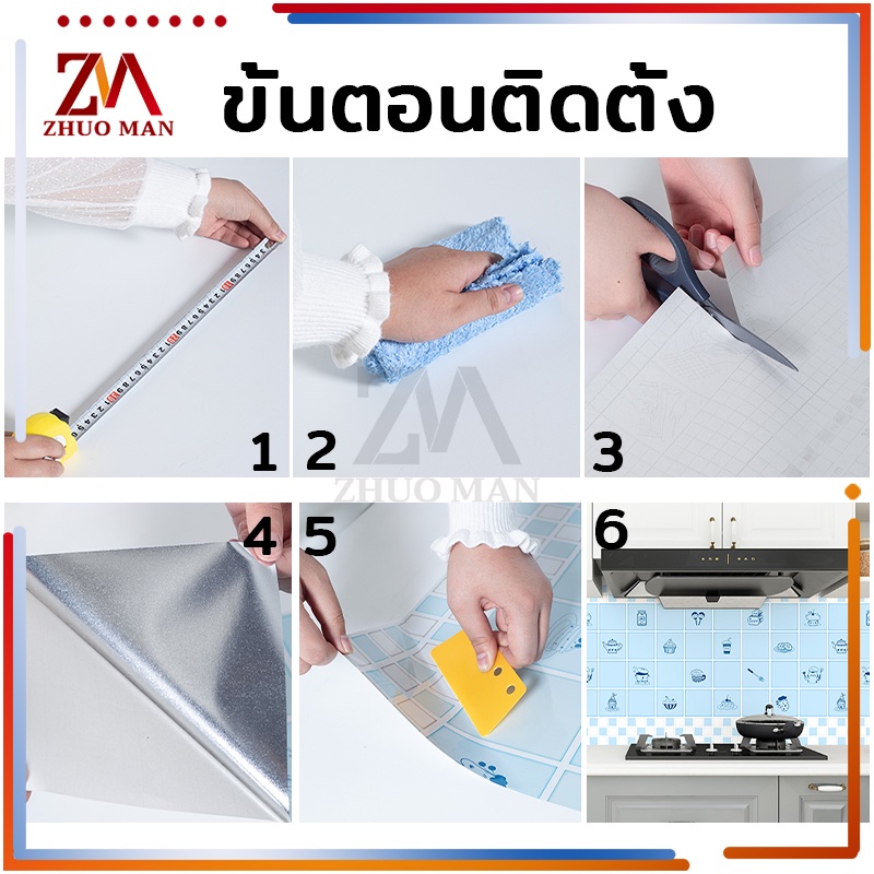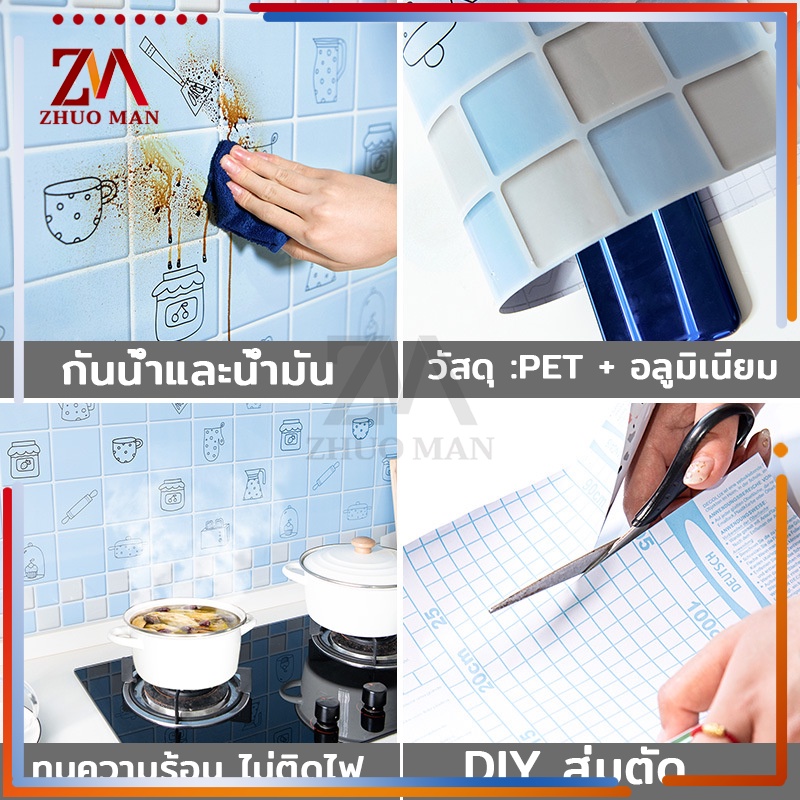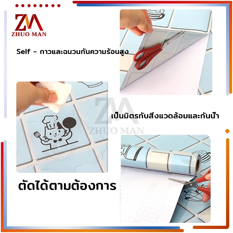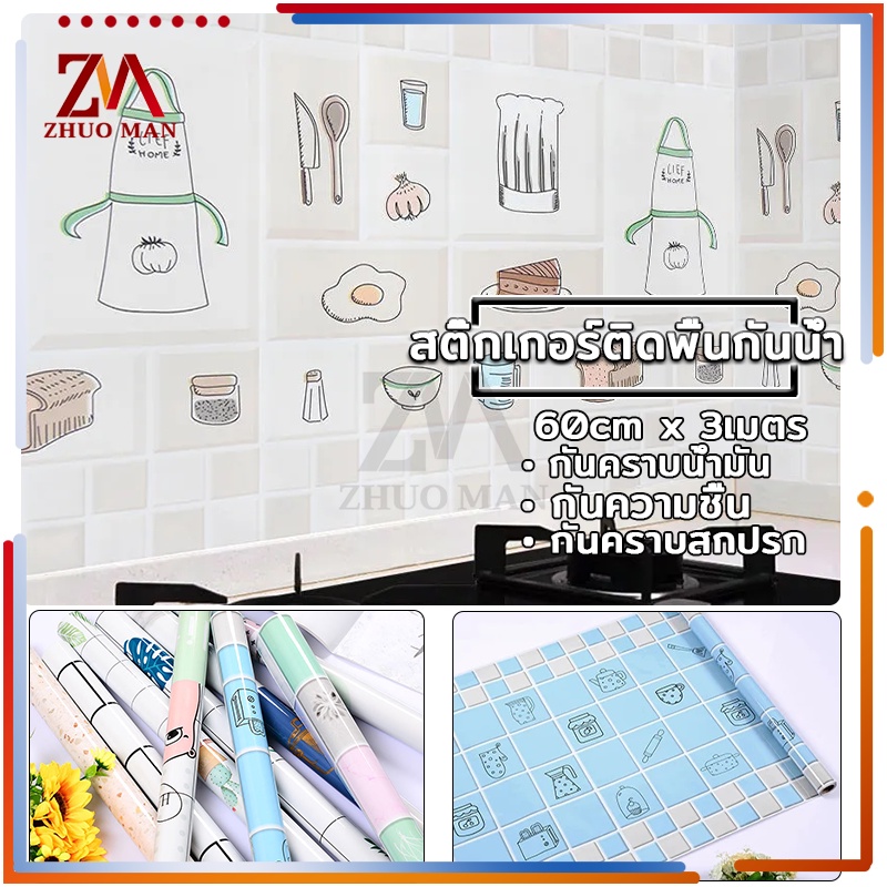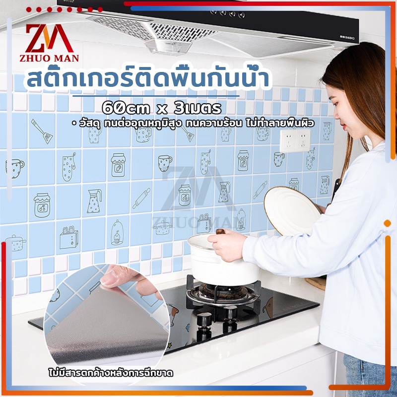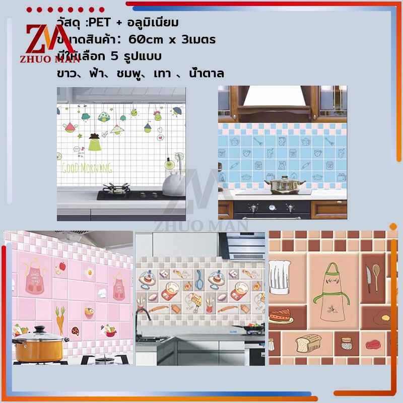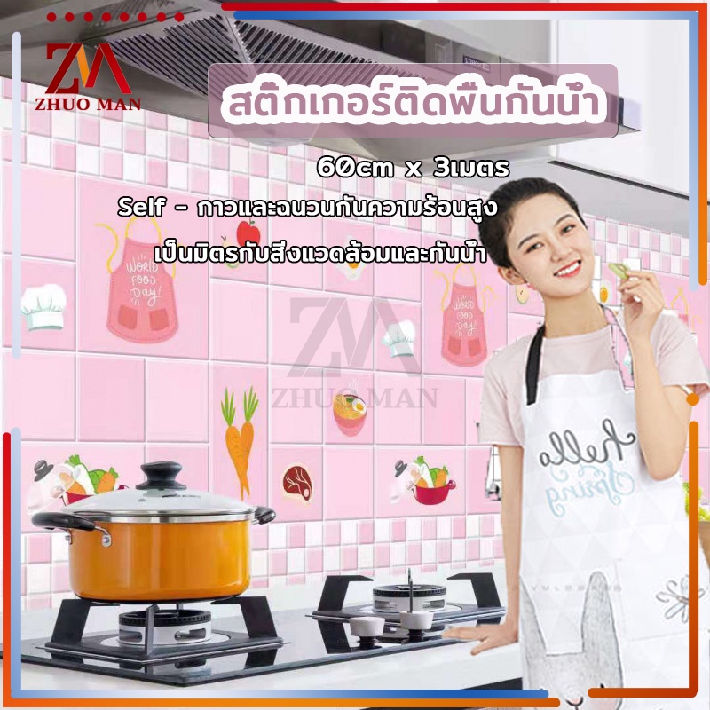 สติ๊กเกอร์ติดห้องครัว สติ๊กเกอร์ติดผนัง 60cm*3เมตร วอเปเปอร์ติดผนัง สติกเกอร์วอลเปเปอร์ กันน้ำ กันรอย ฟิล์มกันเปื้อน