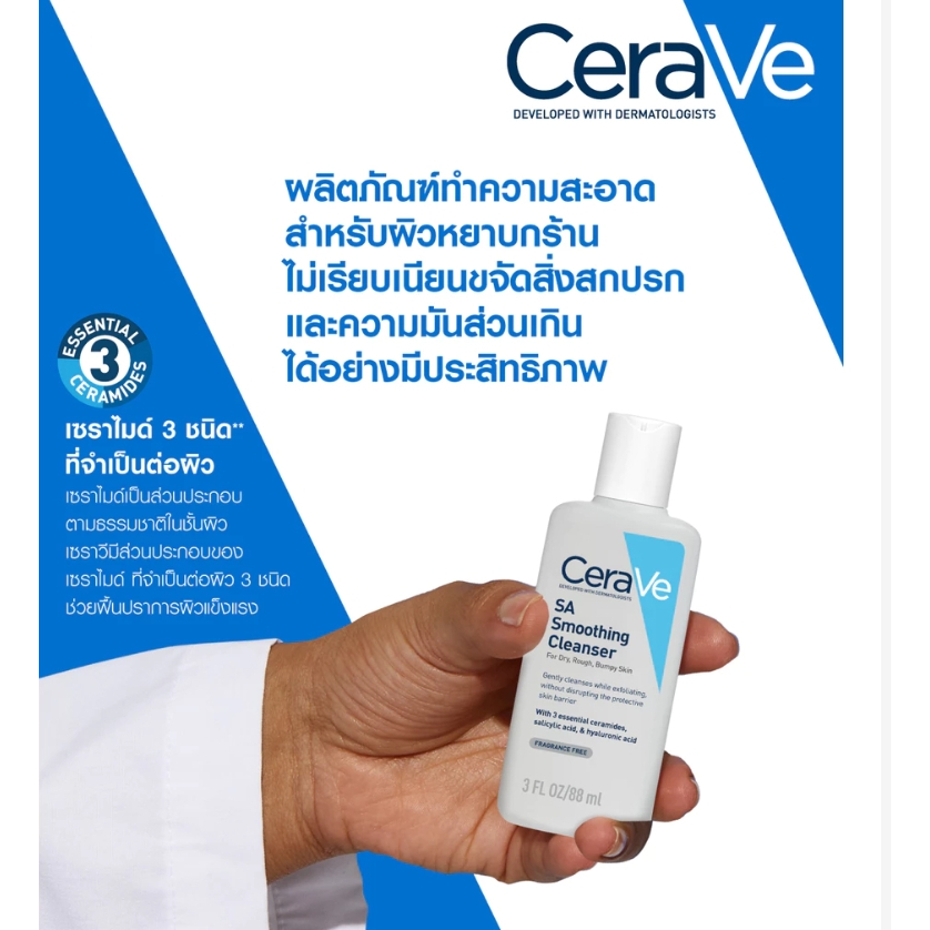 แท้ป้ายไทย‼️ Cerave SA Smoothing Cleanser 88 มล. เซราวี เจลล้างหน้า ผิวหยาบกร้าน ไม่เรียบเนียน