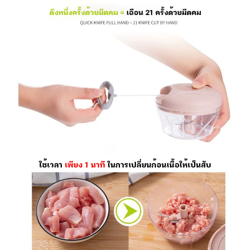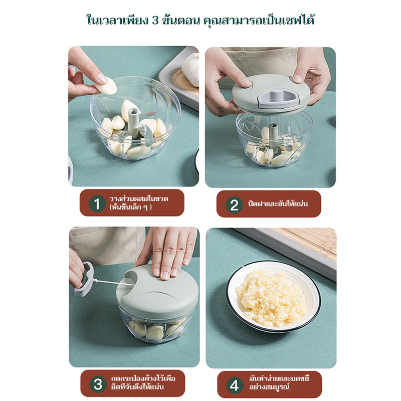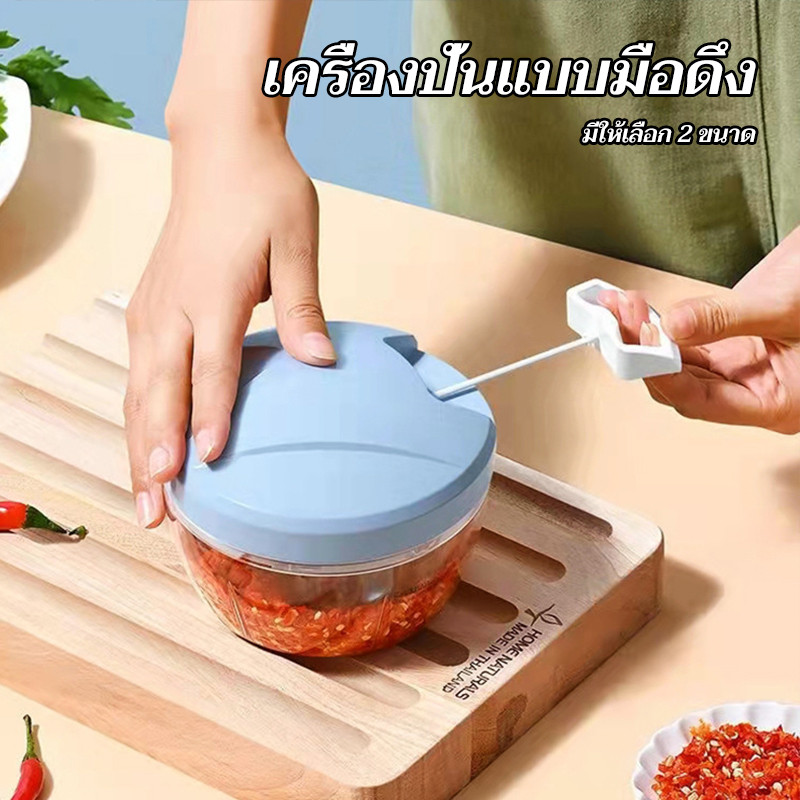 เครื่องบดกระเทียมมือดึง ที่บดกระเทียม เครื่องบดเนื้อ เครื่องบดพริก ที่ปั่นอาหารแบบดึง พลาสติกทนทาน แข็งแรง มี 2ขนาด