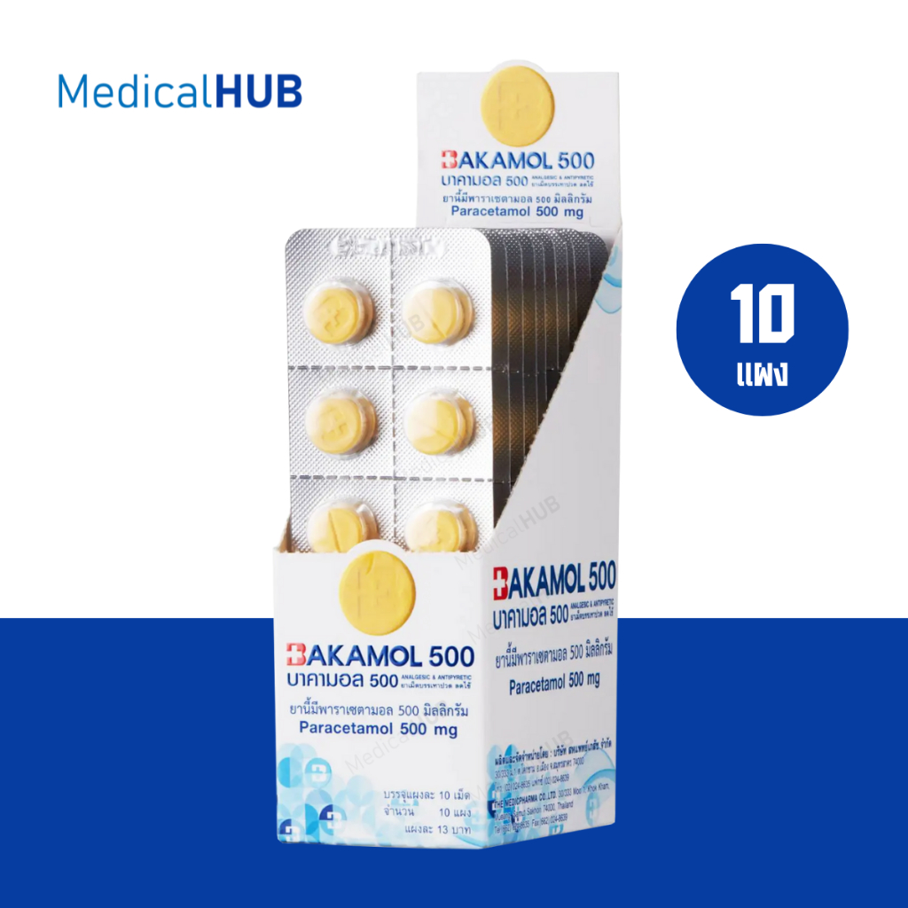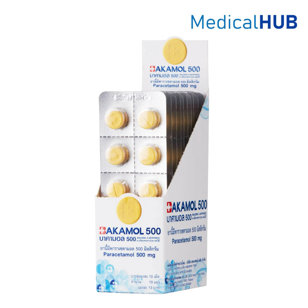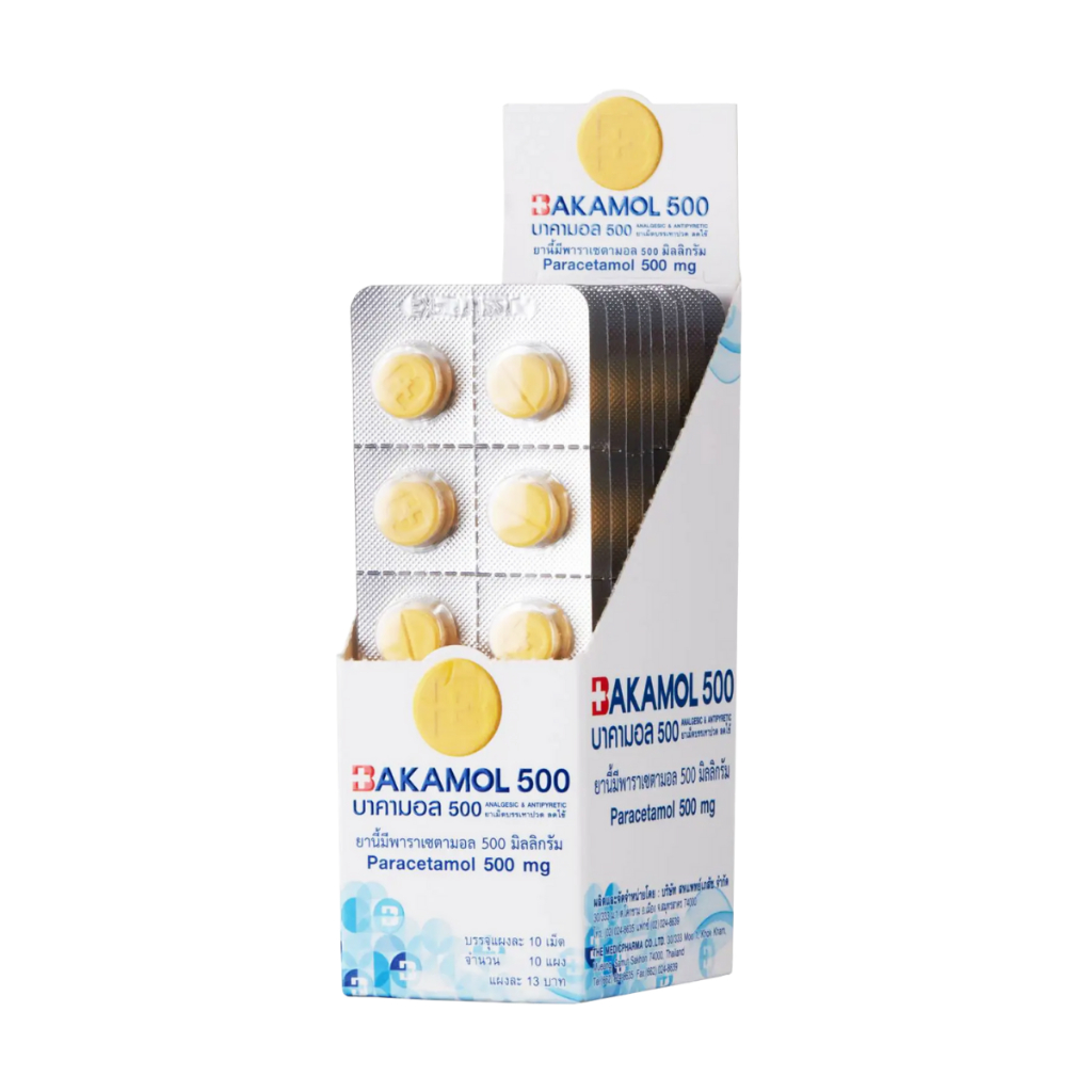 Bakamol 500 บาคามอล บรรเทาอาการปวด พาราเซตามอล 500 มิลลิกรัม 1 กล่อง บรรจุ 10 แผง 20394