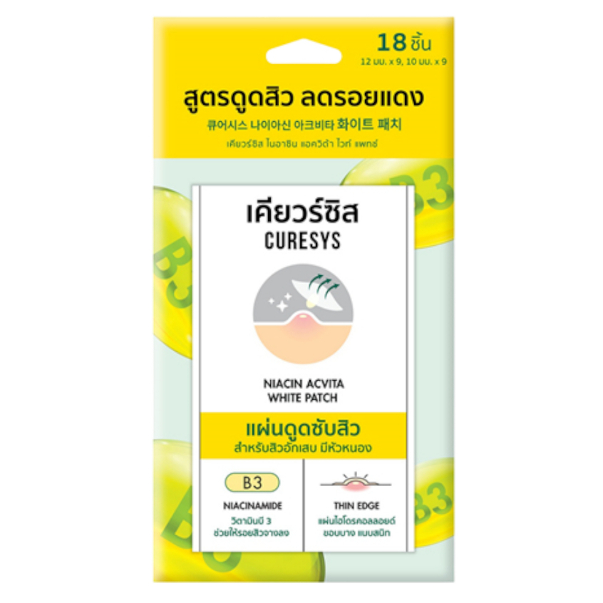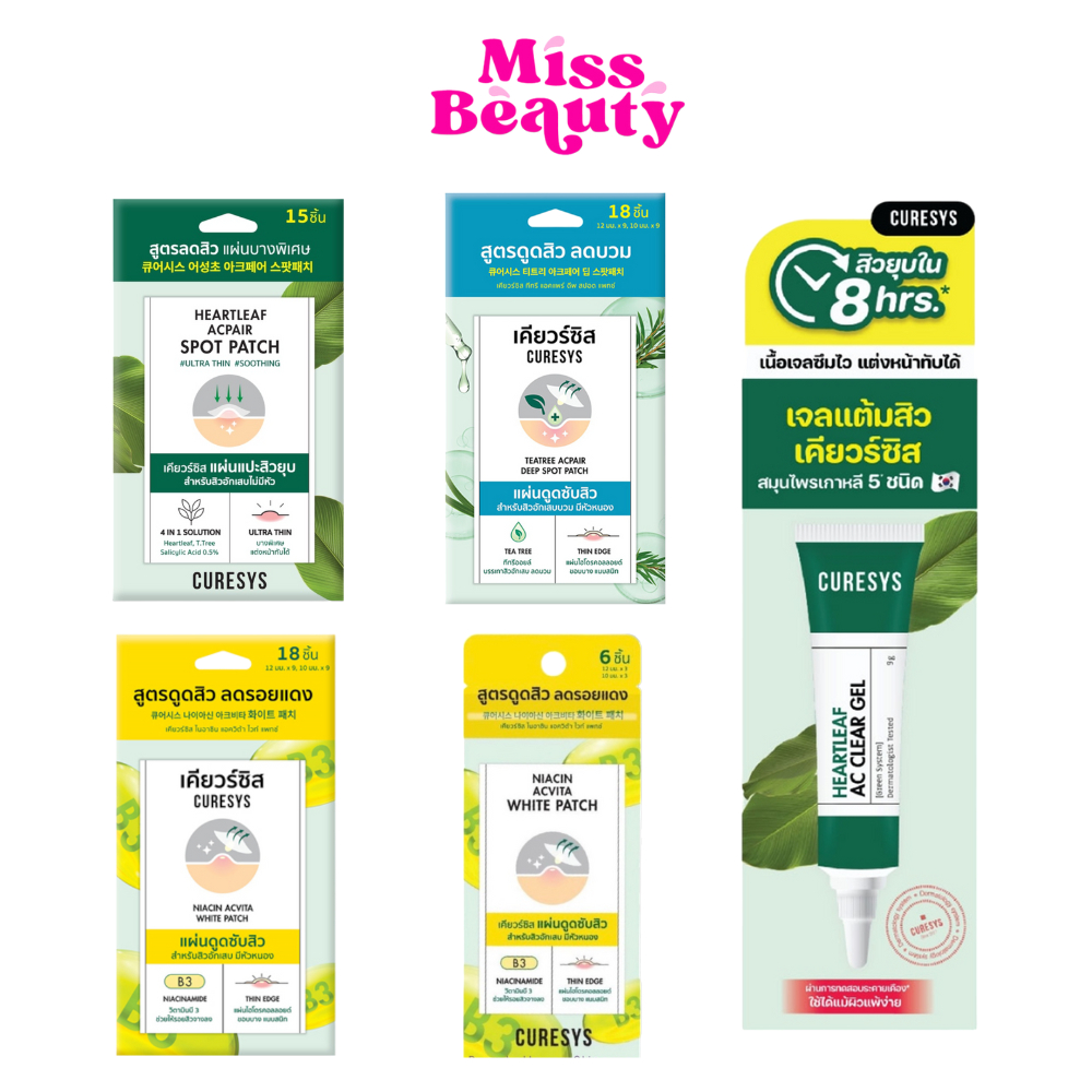 แผ่นแปะสิว CURESYS เคียวร์ซิส ดูดสิว ลดรอยแดง ดูซับสิว ลดสิว แผ่นบางเรียบ 15 ชิ้น , ดูสิว ลดบวม 18 ชิ้น