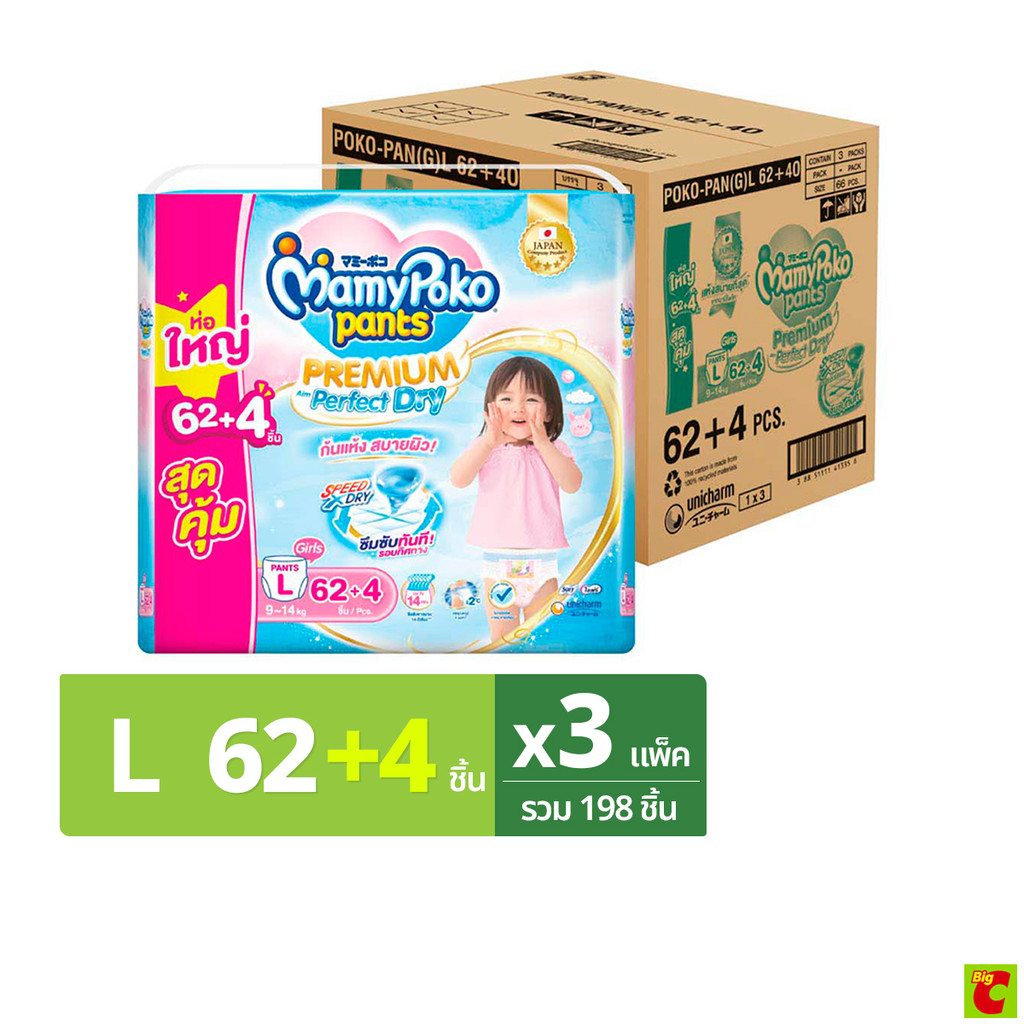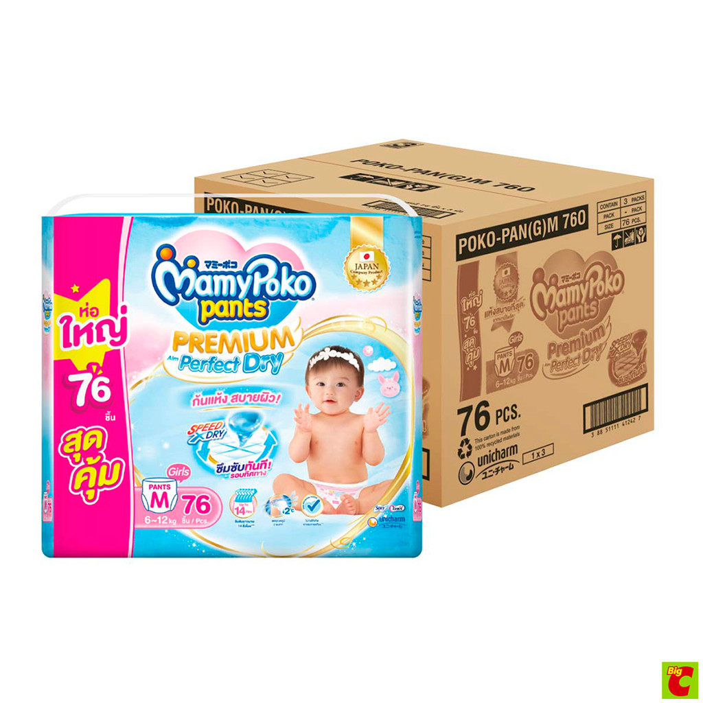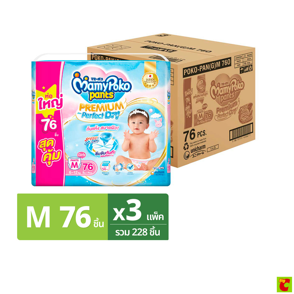 มามี่โพโค แพนท์ กางเกงผ้าอ้อม พรีเมียม เอม เพอร์เฟกต์ ดราย สำหรับเด็กผู้หญิง ขนาด M - XXL x 3 แพ็ค