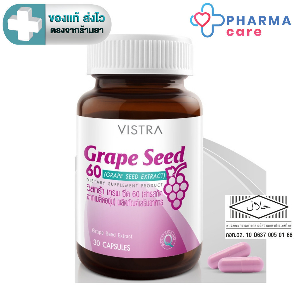 VISTRA GRAPE SEED 60 MG 20, 30 แคปซูล วิสทร้า เกรพซี๊ด [PC]