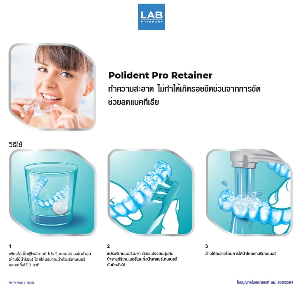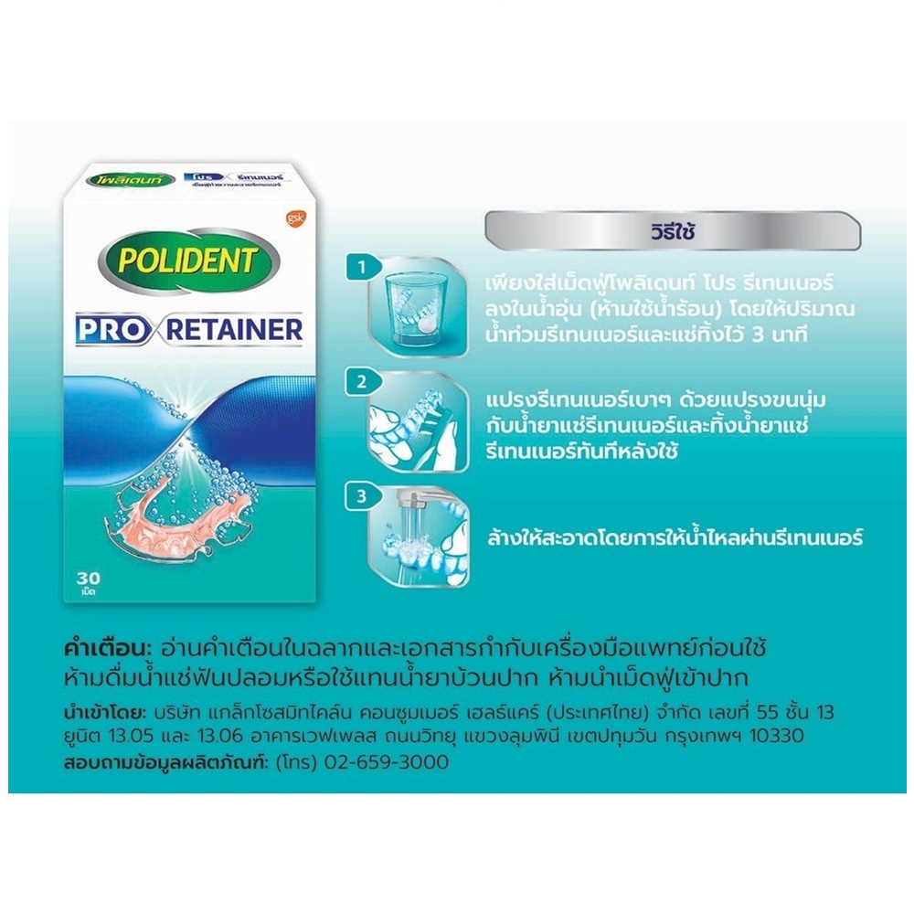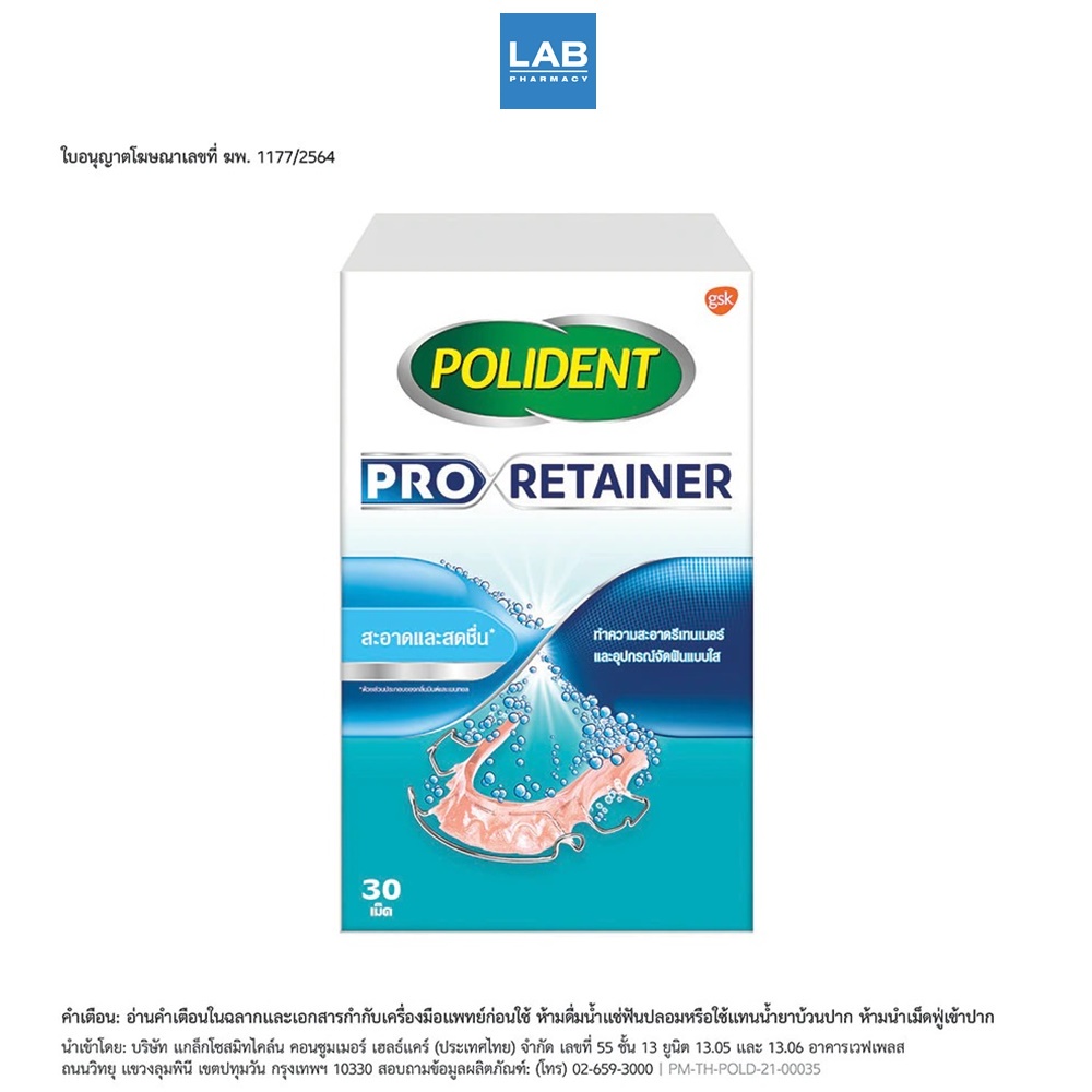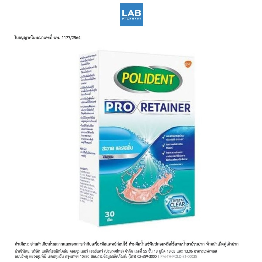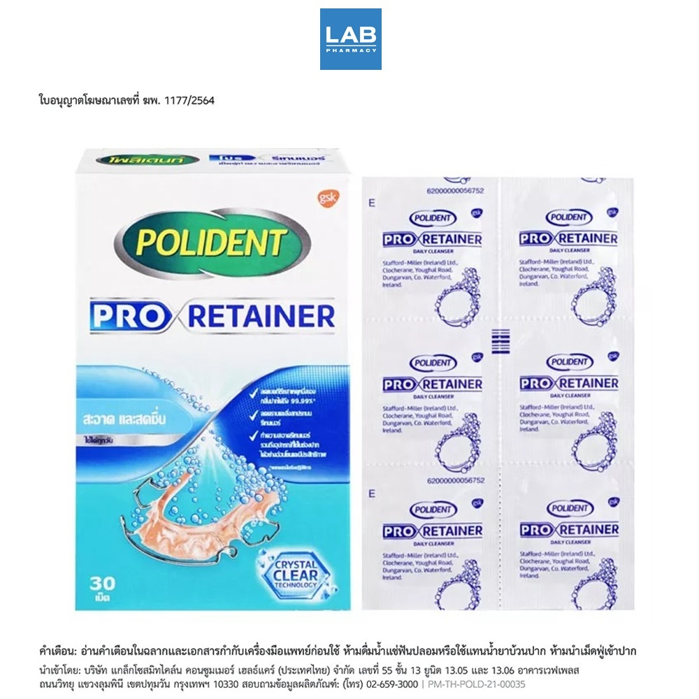 Polident Pro Retainer 30s - โพลิเดนท์ โปร รีเทนเนอร์ ผลิตภัณฑ์ทำความสะอาดรีเทนเนอร์อย่างอ่อนโยน 1 กล่อง บรรจุ 30 เม็ด