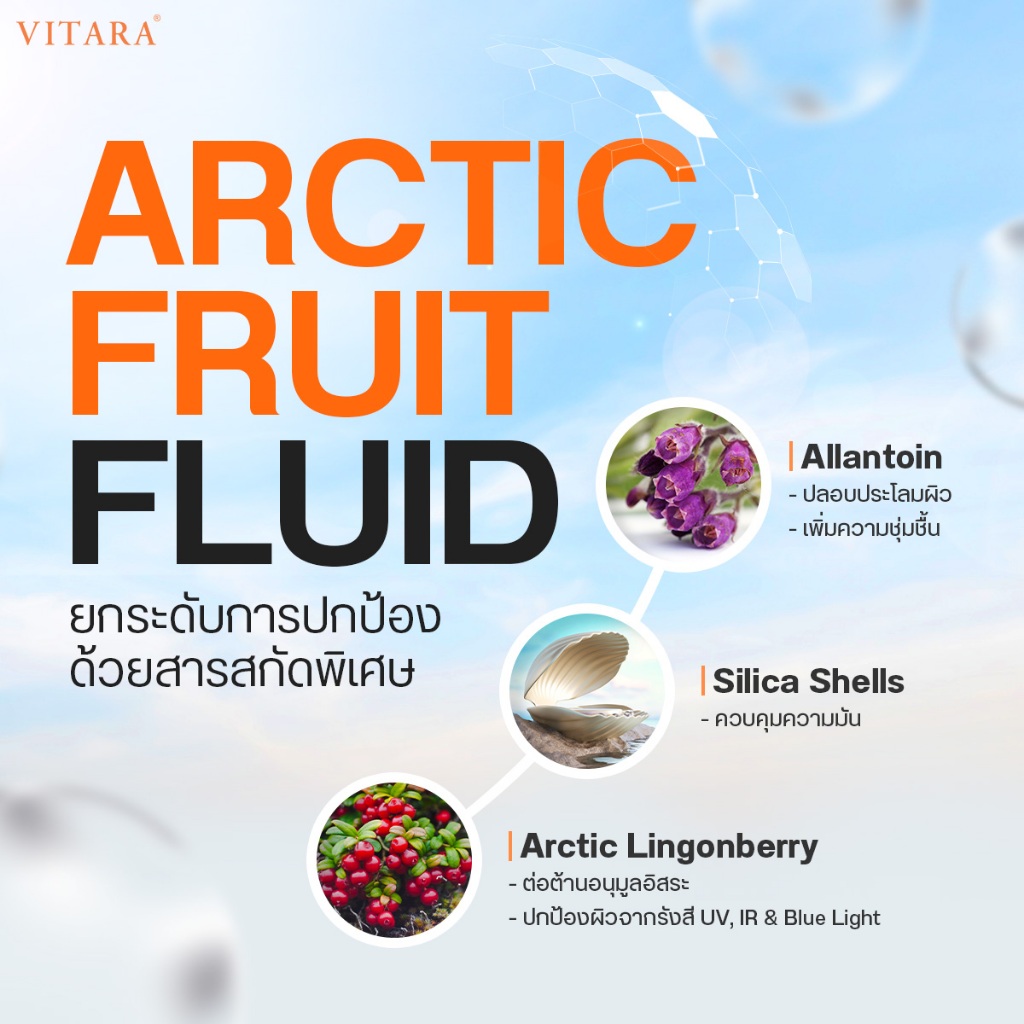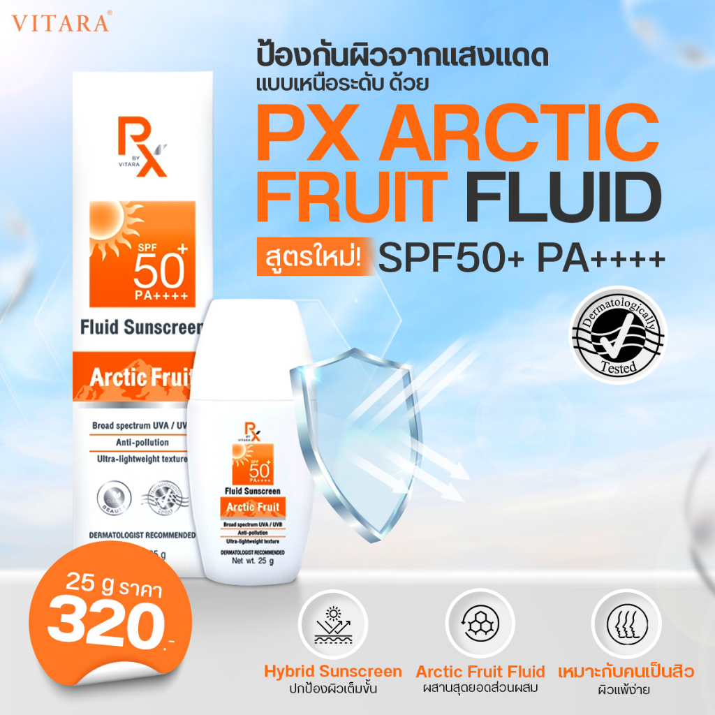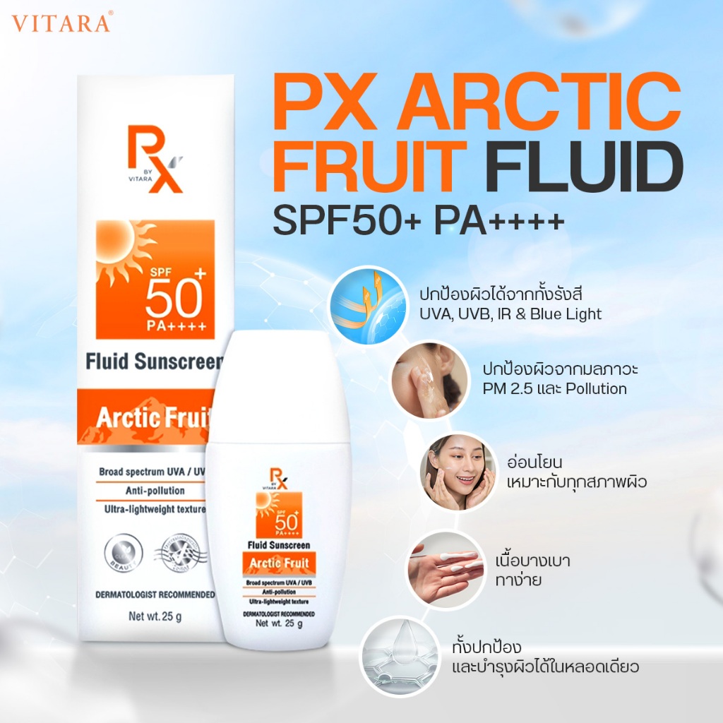 PX Arctic Fruit Fluid SunScreen พีเอ็กซ์ อาร์กติก ฟรุ๊ต ฟลูอิด ซันสกรีน SPF50+ PA++++ By Vitara [25 g.] กันแดด