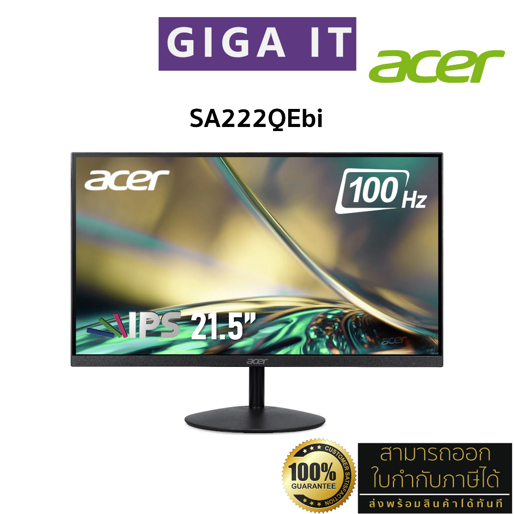 ACER Monitor รุ่น SA222QEbi 21.5" IPS 100Hz (1080p, 1ms, VGA, HDMI) ประกันศูนย์เอเซอร์ 3 ปี
