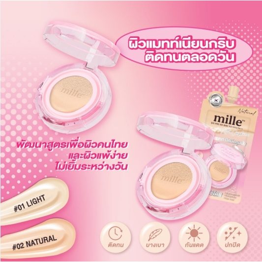 Mille มิลเล่ เพอร์เฟค แมทท์ ลอง แวร์ คุชชั่น SPF50 PA+++ 6 กรัม (แบบซอง) เนื้อคุชชั่นบางเบา ปกปิด ติดทน