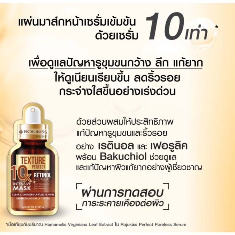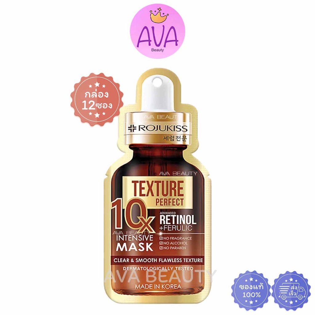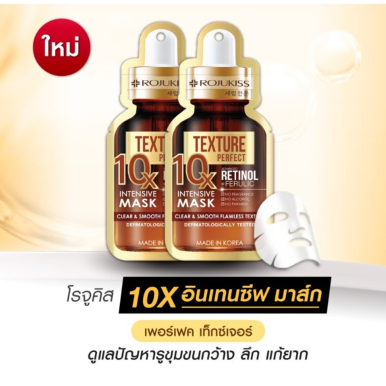 (12ชิ้น/กล่อง) Rojukiss โรจูคิส เพอร์เฟค เท็กซ์เจอร์ 10X อินเทนซีฟ มาส์ก (กล่องน้ำตาล) [2805]