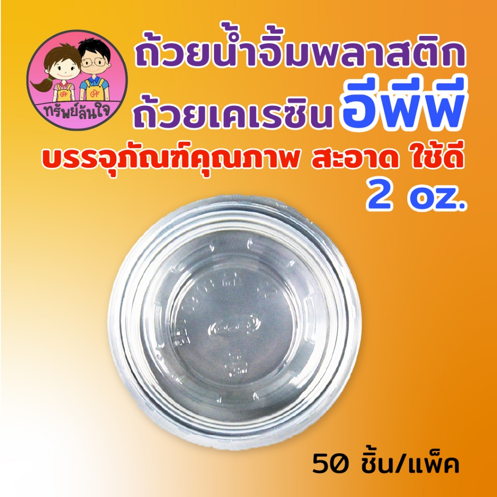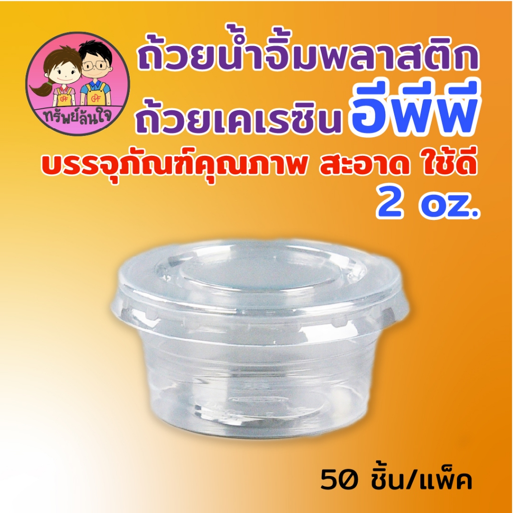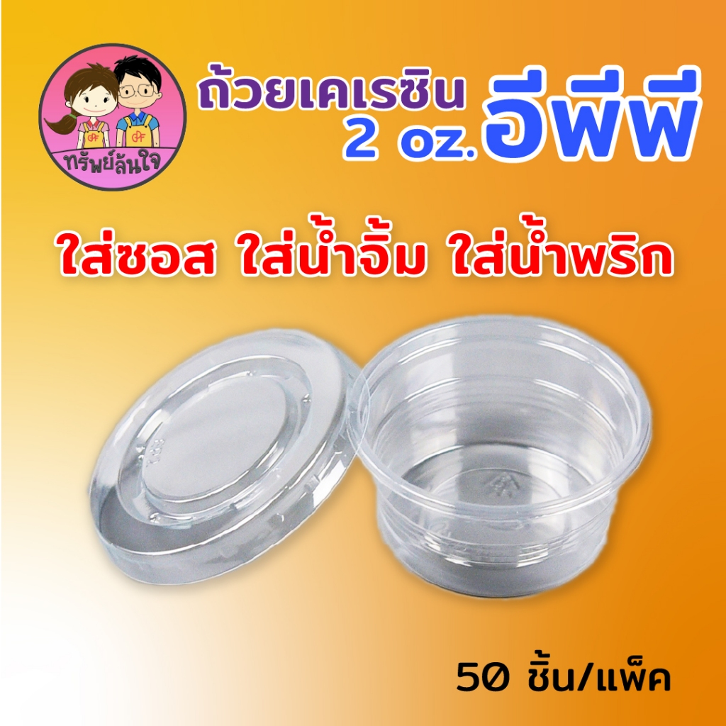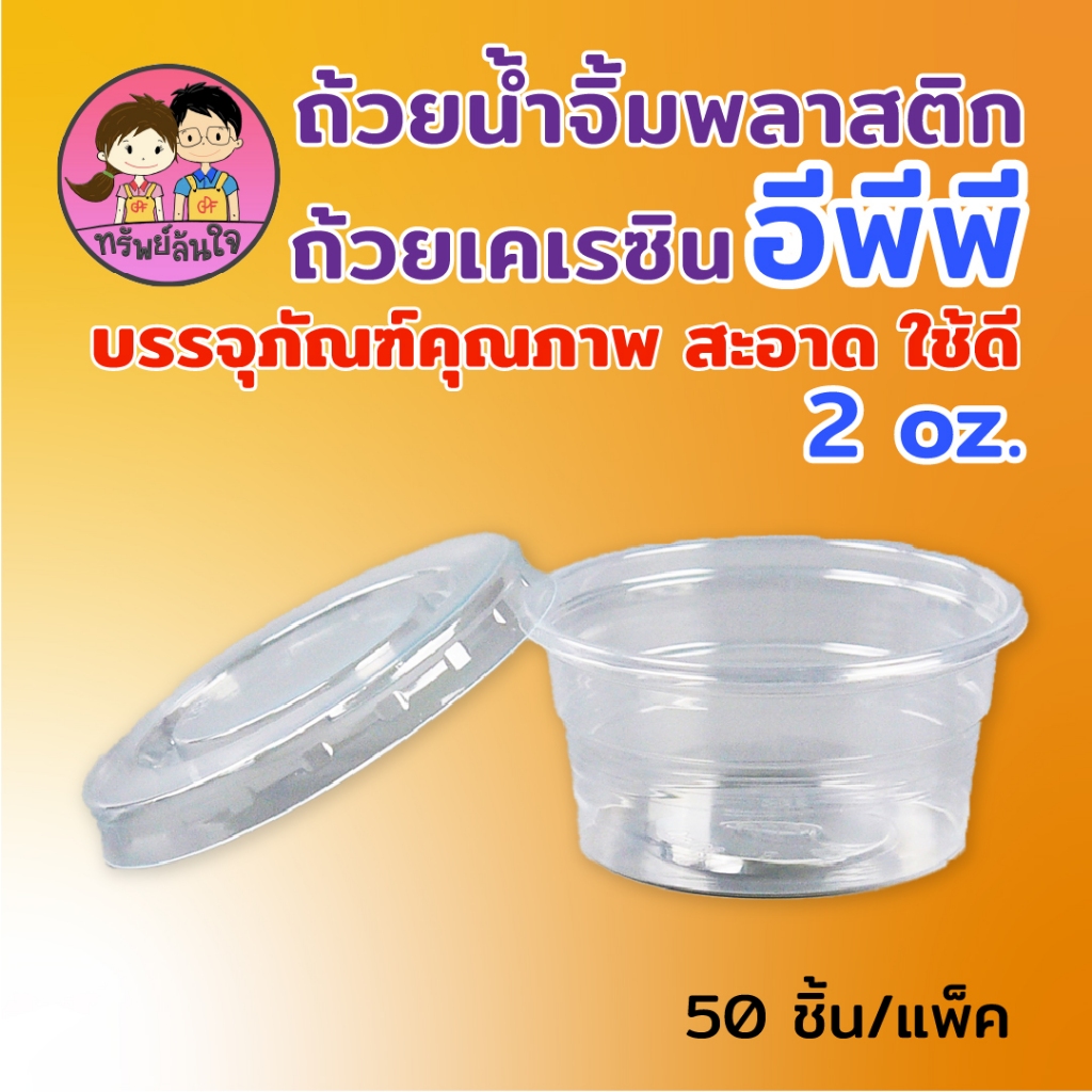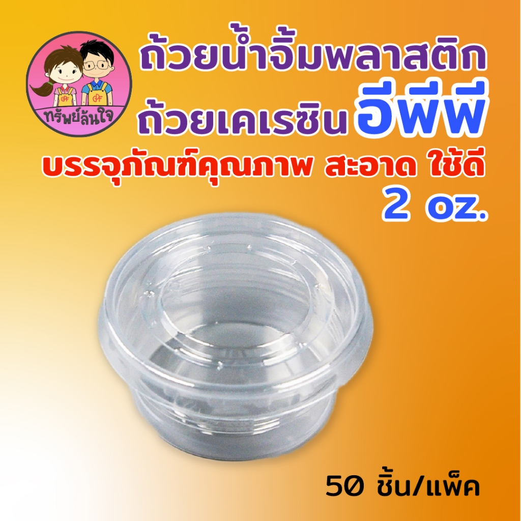 ถ้วยน้ำจิ้มฝาแยก ยี่ห้อ EPP พร้อมฝา 2ออนซ์ ถ้วยน้ำจิ้มใสเคเรซิ่น ฝา PET (50ชุด/แพ็ค)