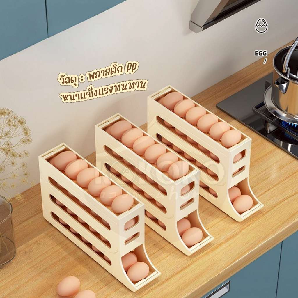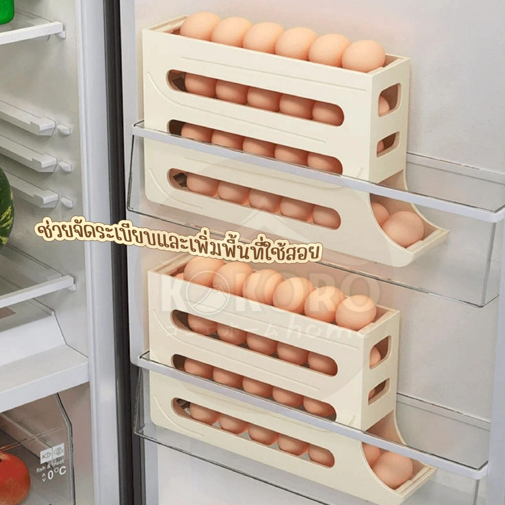 [ส่งด่วน 2 ชม.] Kokoro Home กล่องใส ่ไข่ในตู้เย็น 4 ชั้น แบบเลื่อนอัตโนมัติ เก็บไข่สดได้เยอะ แข็งแรงทนทาน MB294
