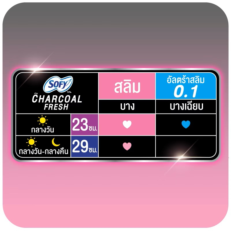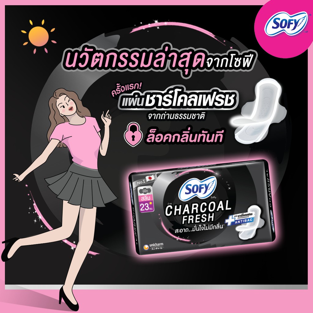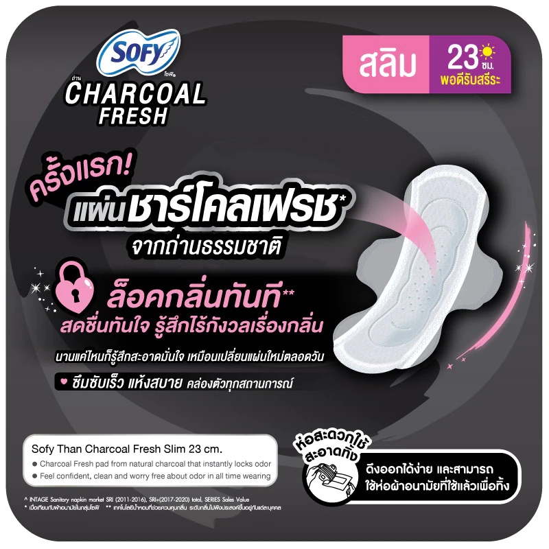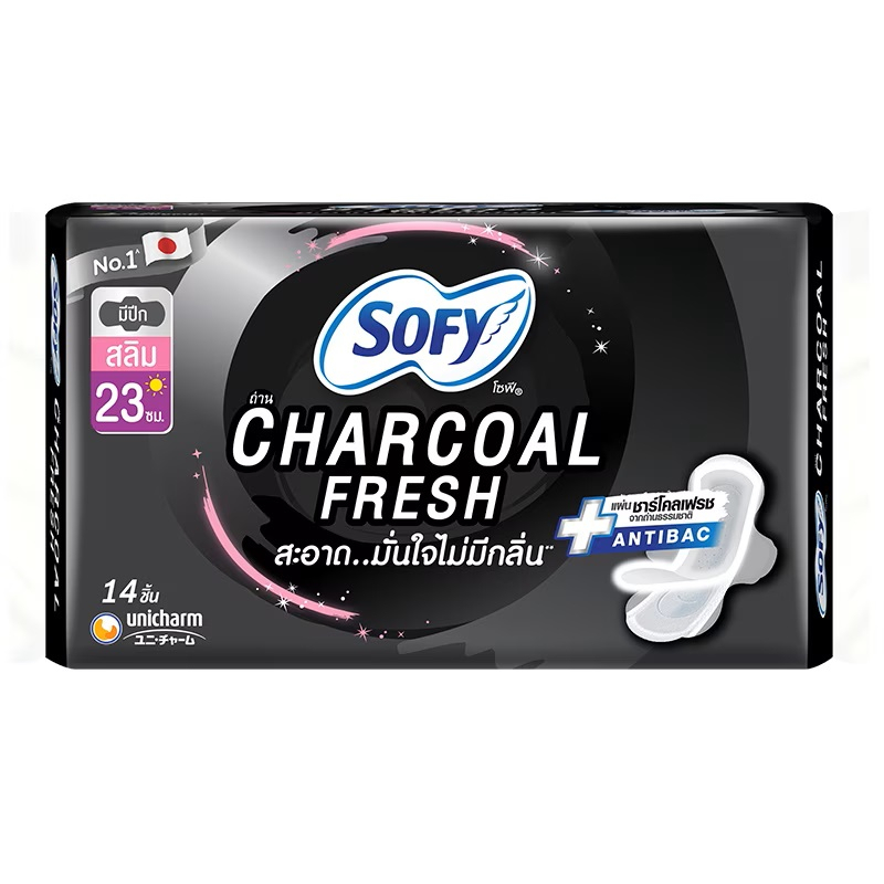 โซฟี ชาร์โคล เฟรช สลิม มีปีก 23ซม. 14ชิ้น/Sofy Charcoal Fresh Slim Wing 23cm 14pcs
