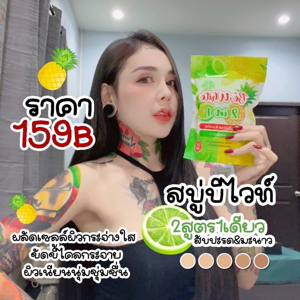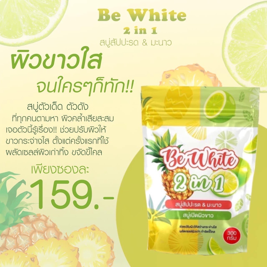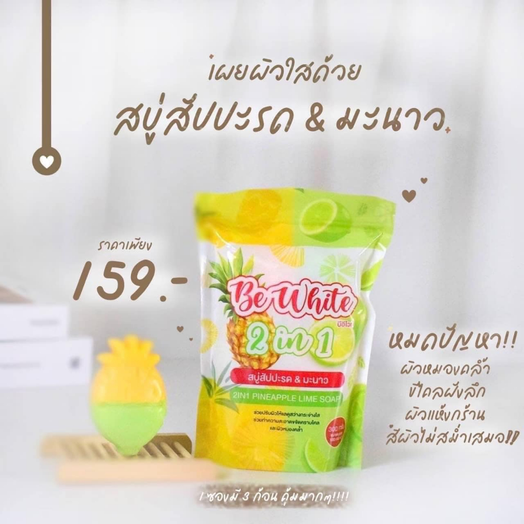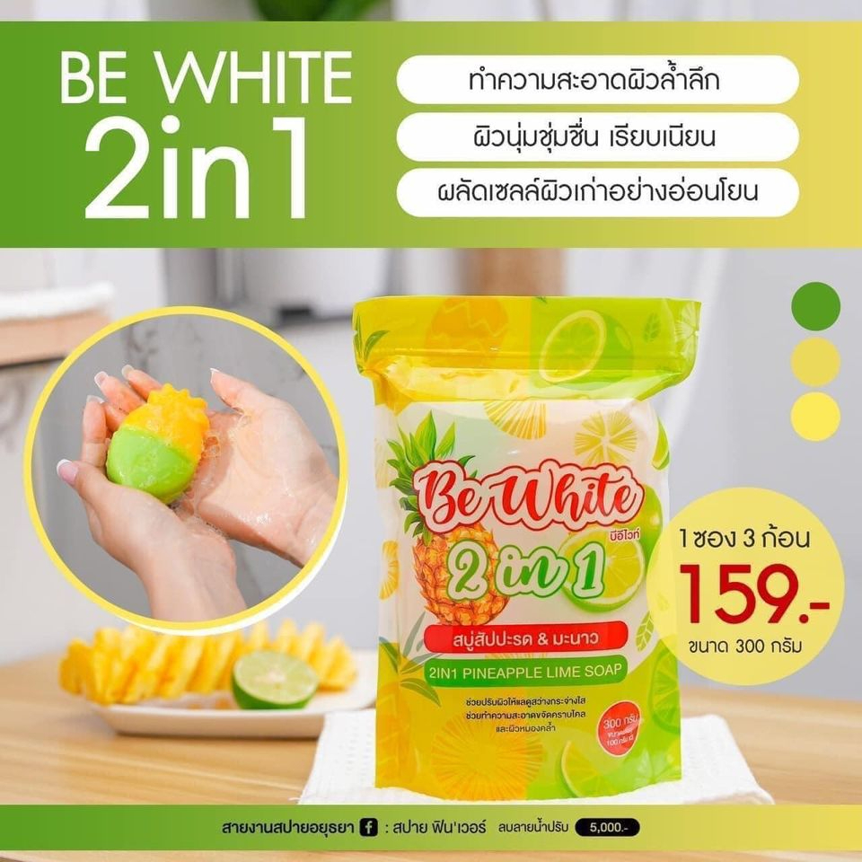 ของแท้ แพคเกจใหม่ สบู่สับปะรด มะนาว BE White 2 in 1 สบู่เปิดผิวขาว ผิวกระจ่างใส บีไวท์ สัปรด