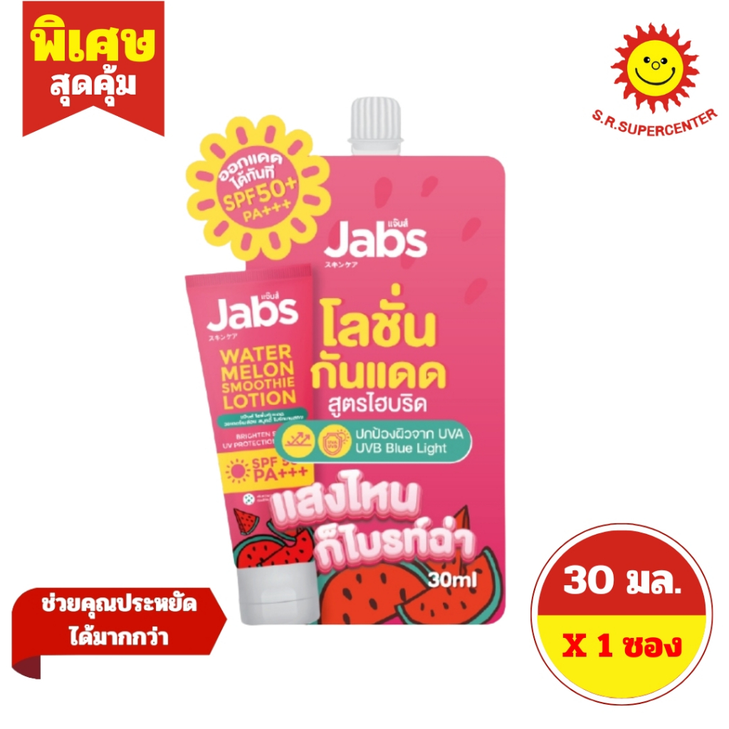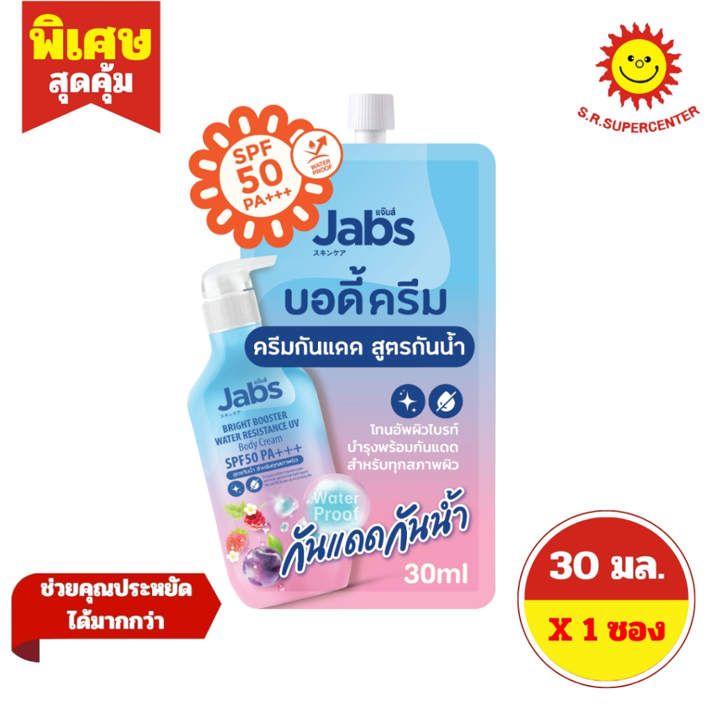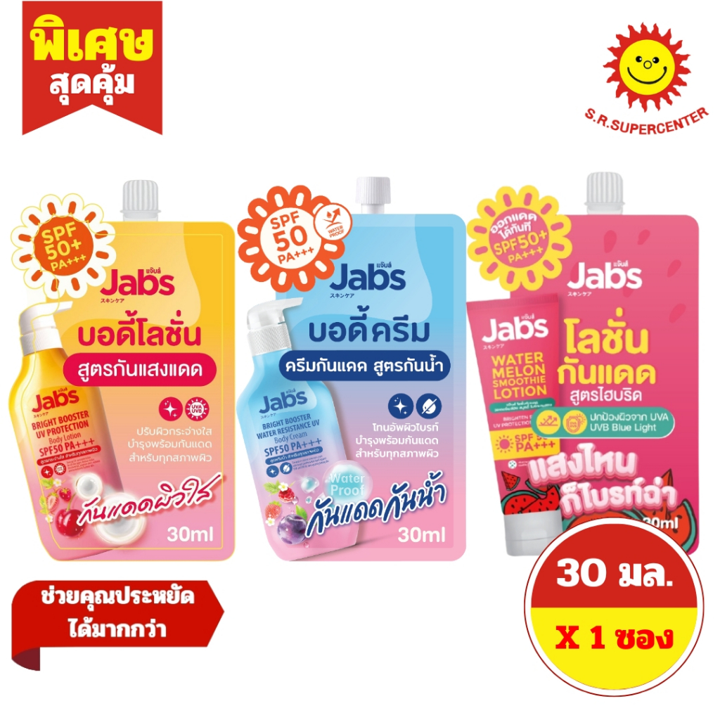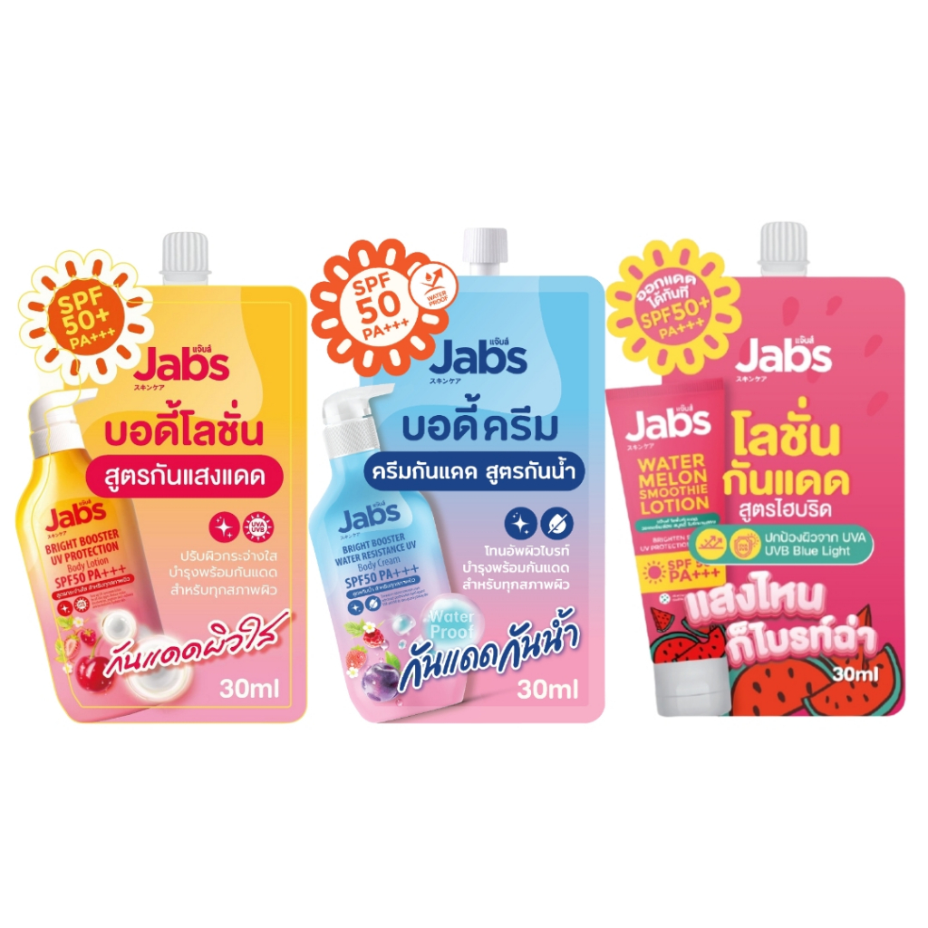 [ 1ซอง ] Jabs แจ๊บส์ ไบรท์ บูสเตอร์ ยูวี บอดี้ โลชั่น ครีม โลชั่นบำรุงผิว แบบซอง ขนาด 30 มล. (1ซอง) คละสูตร