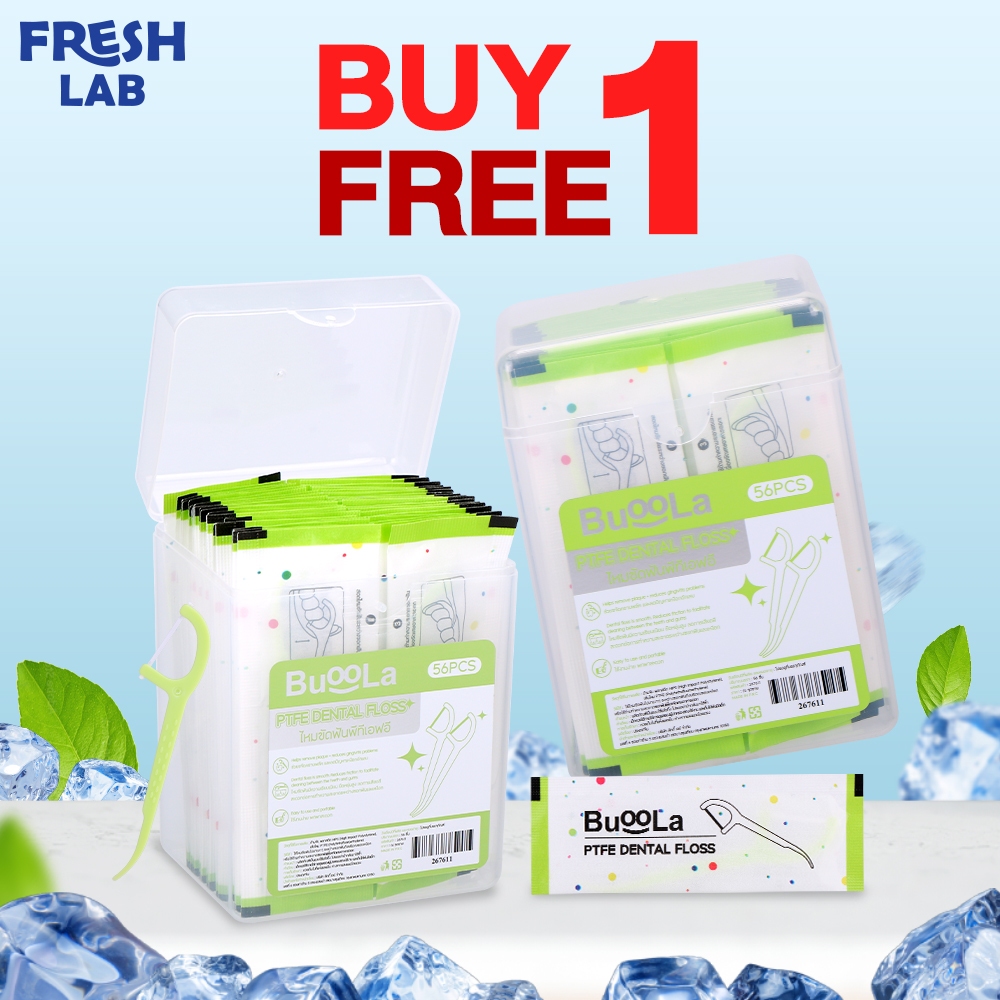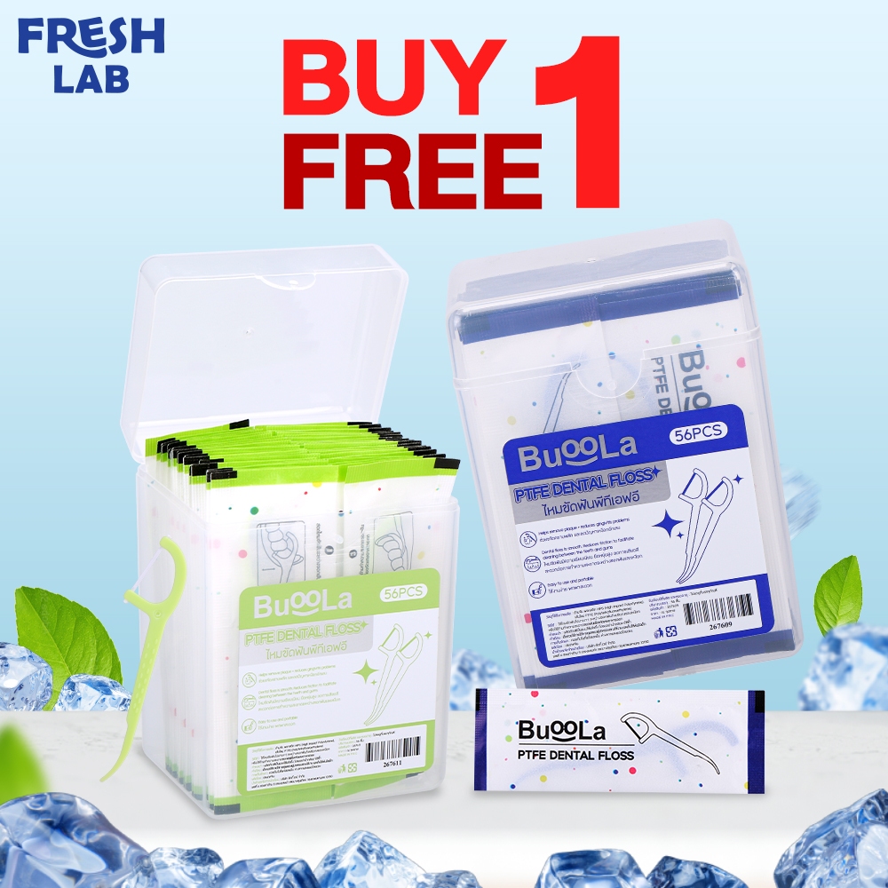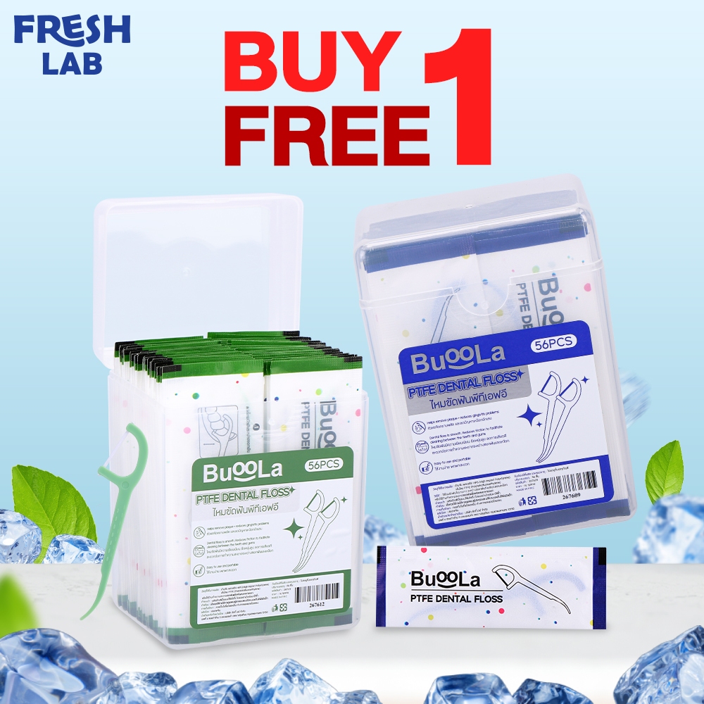 [1 Free 1] ไหมขัดฟันชนิดด้ามBUOOLA ไหมPTFE Dental Floss ขจัดคราบพลัค ลดการเสียดสี (1 กล่อง 56 ชิ้น)
