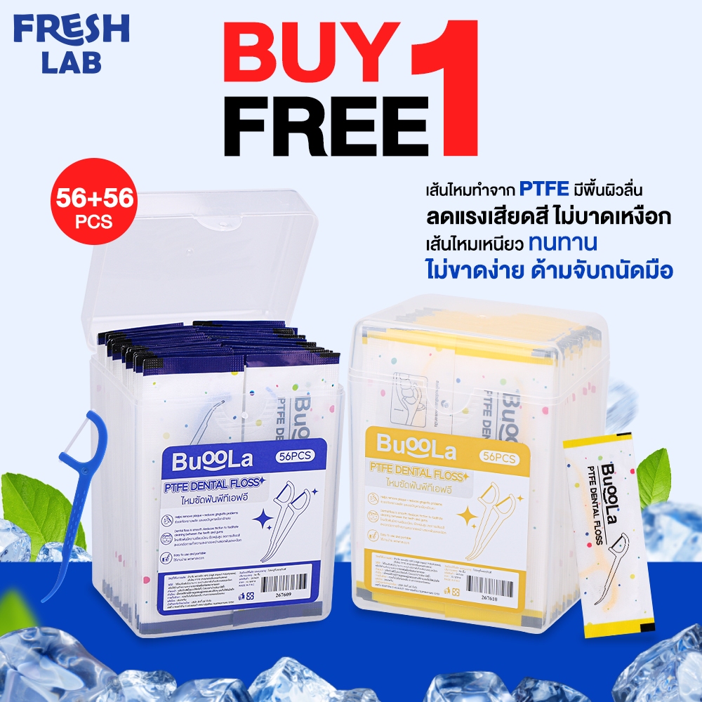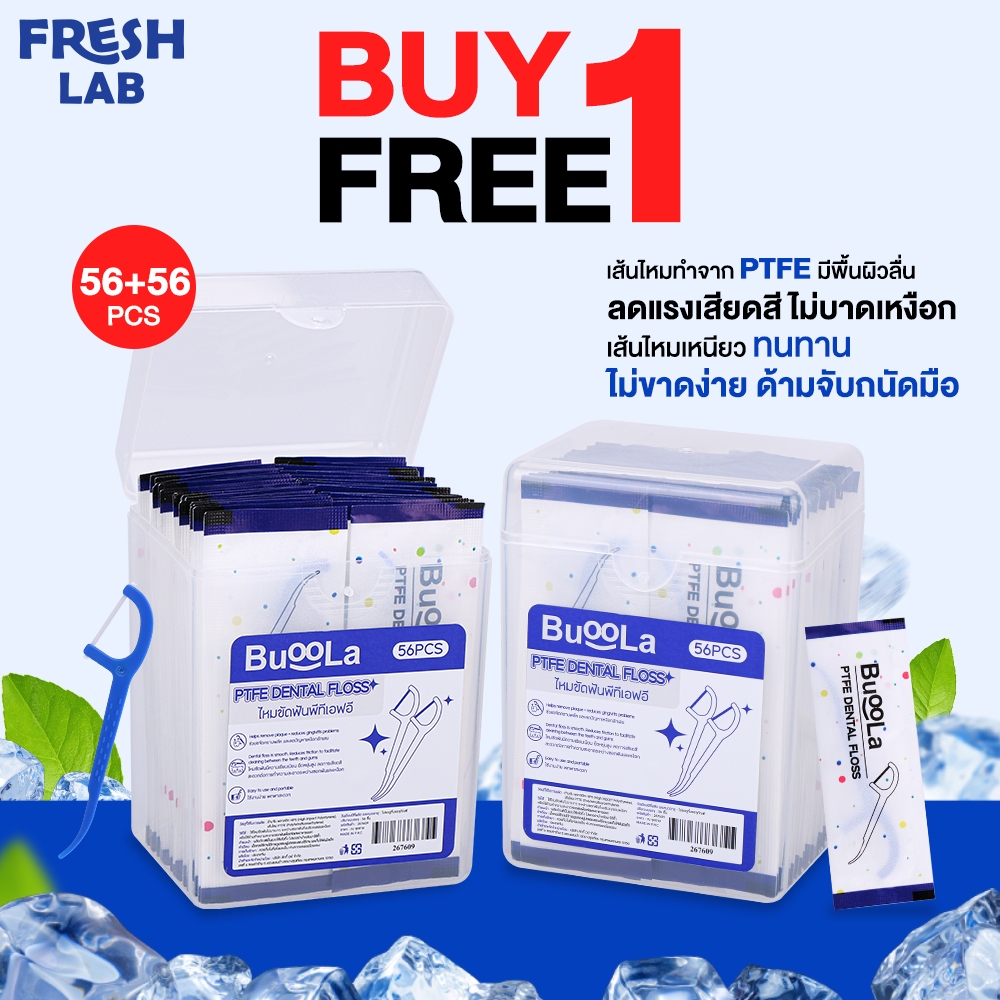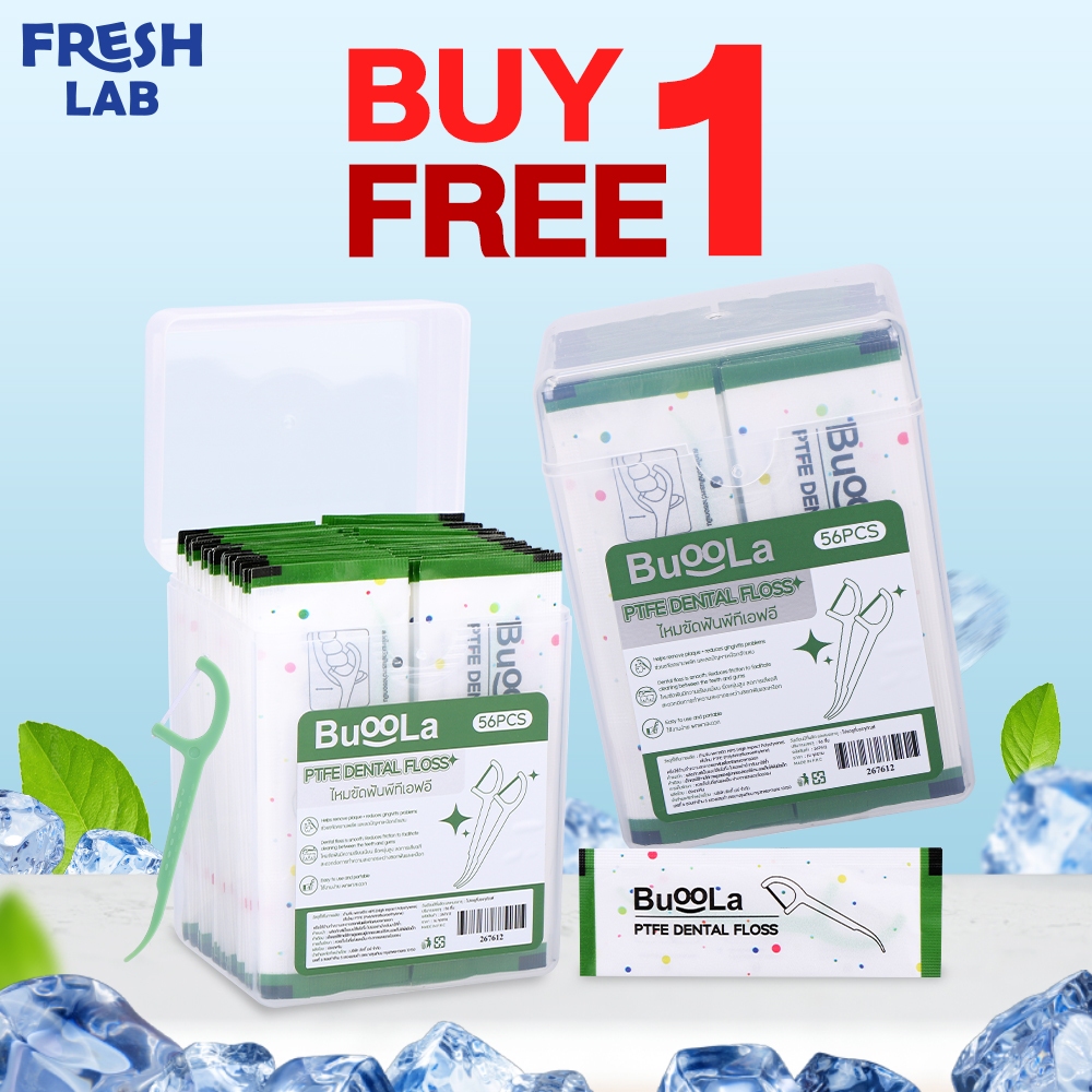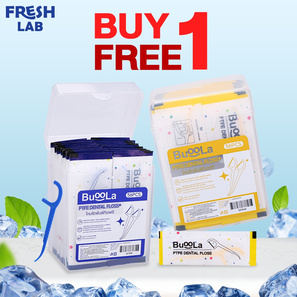 [1 Free 1] ไหมขัดฟันชนิดด้ามBUOOLA ไหมPTFE Dental Floss ขจัดคราบพลัค ลดการเสียดสี (1 กล่อง 56 ชิ้น)
