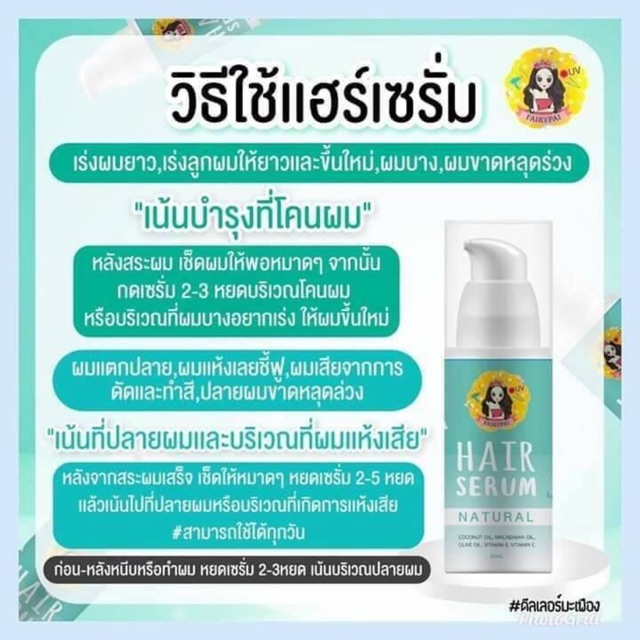 Fairypai Hair Serum แฟรี่ปายแฮร์เซรั่ม/บูสเตอร์คอลลาเจน ฟื้นฟูบำรุงผมเสียผมแห้งแตกปลายไม่มีน้ำหนักและเร่งผมยาวไว ใช้ดี แ